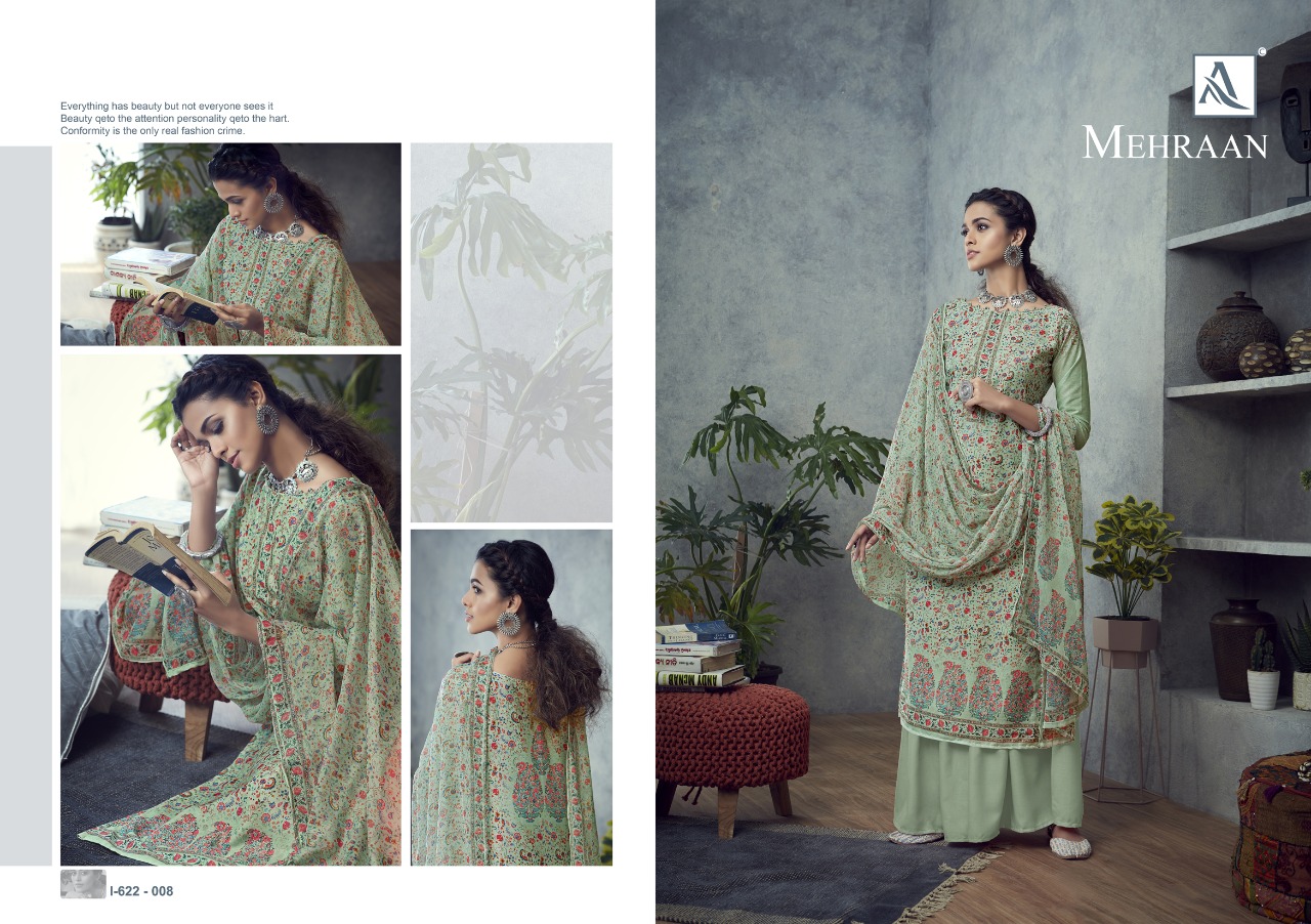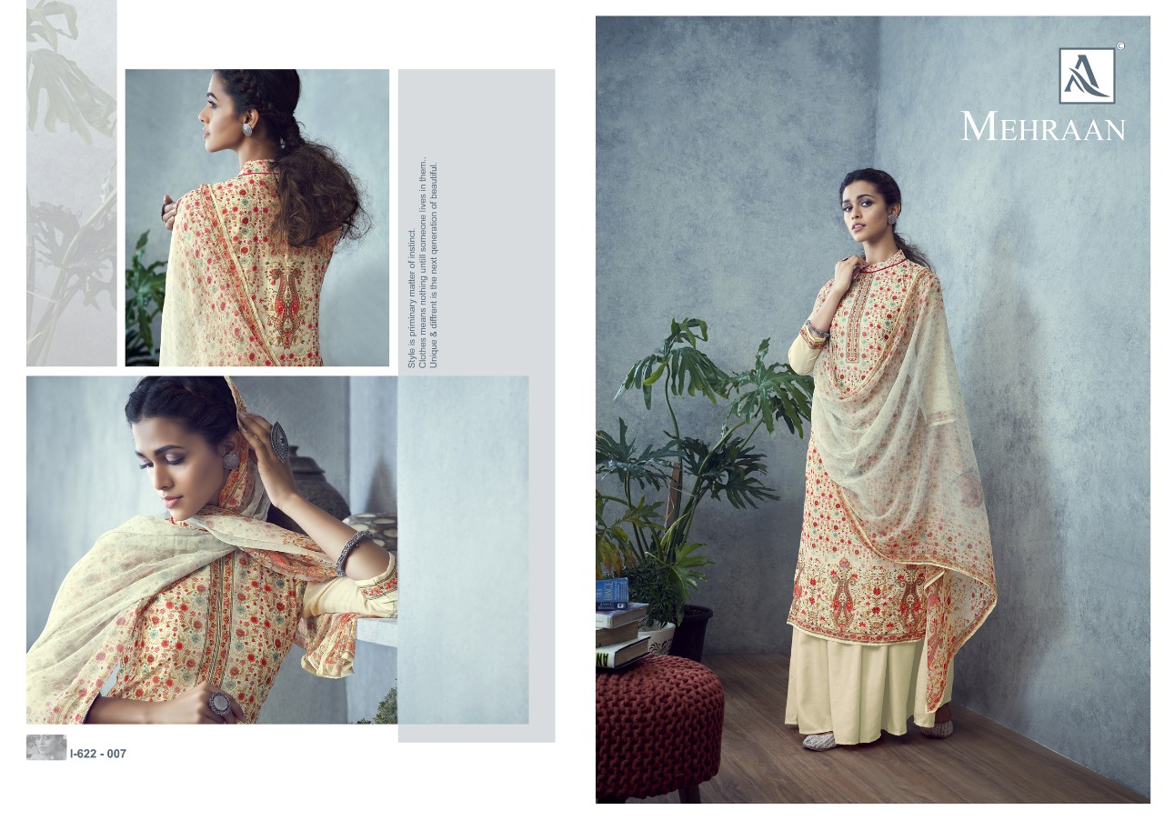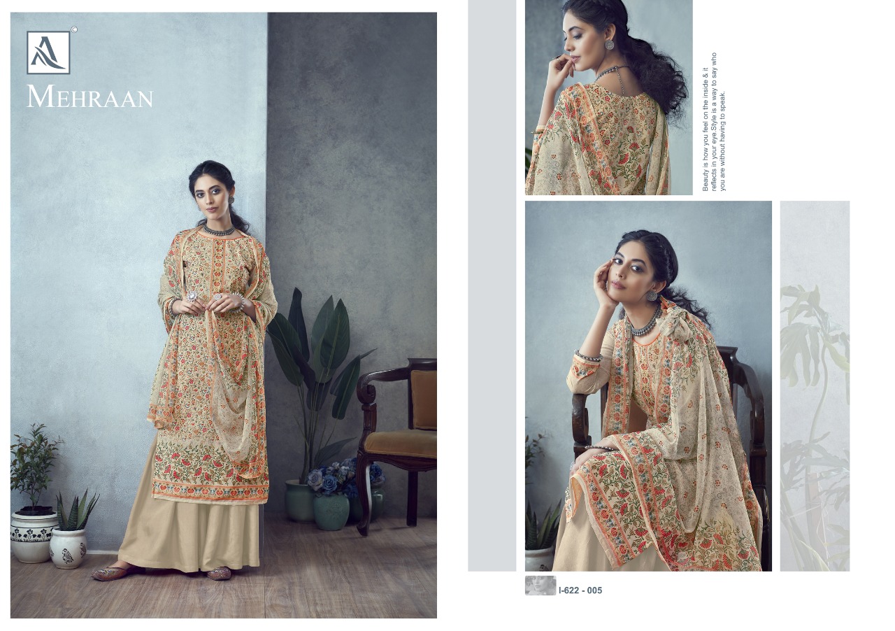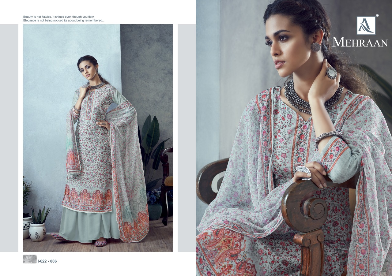 Buy Online Mehraan By Alok Suit Manufacturer And Dealer From All Over India 8 Pcs of Full Catalogue at Wholesale Price. Looking for Mehraan By Alok Suit Manufacturer And Dealer From All Over India Full Catalouge at Best Price? Buy Now Mehraan By Alok Suit Manufacturer And Dealer From All Over India at Wholesale Rate of Rs 5000 with Total 8 Pcs from authroized dealer and supplier of Brand. Cost of Each piece is just only Rs 625 which is very low and affordable price to resale the product in your retail store ,This is Surat based Wholesale Supplier & Dealer of Brand. Click on Brand name to Know more about Brand's products.Call or Whatsapp on 9898838984 for booking or enquiry