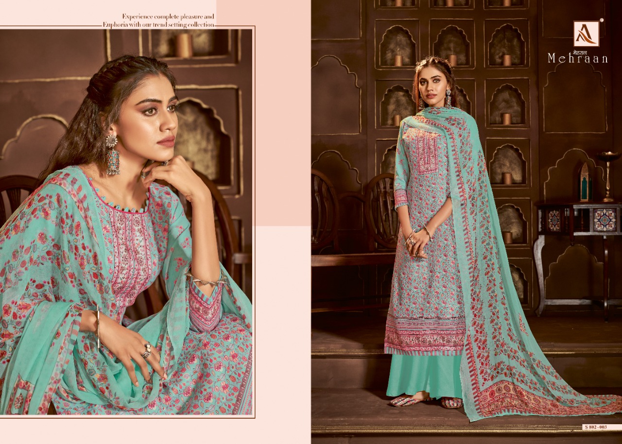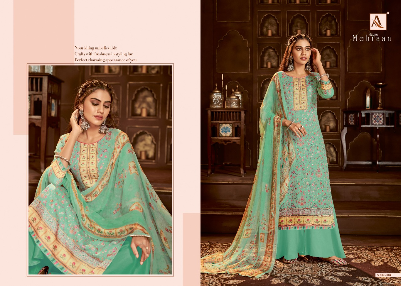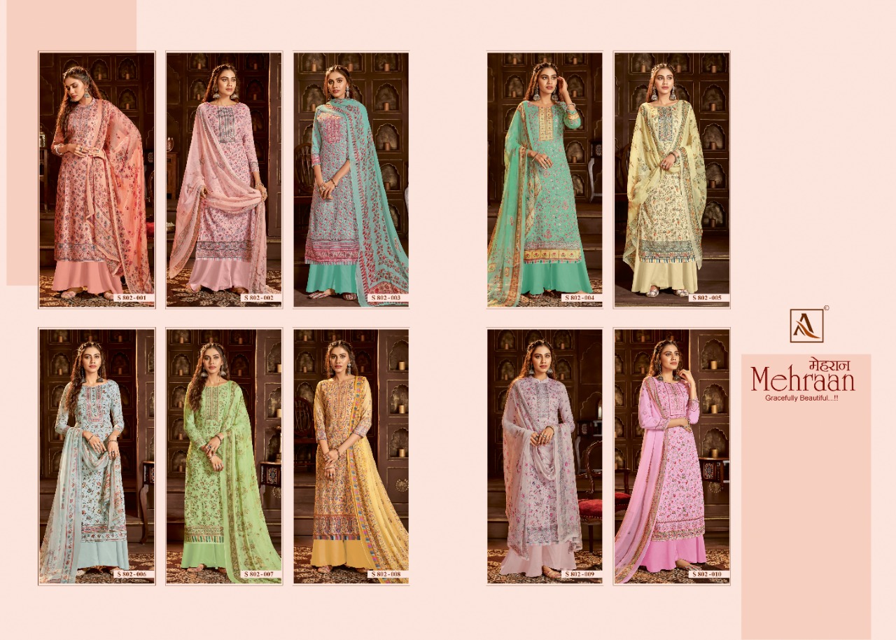 Buy Online Mehraan By Alok Suit Wholesale Supplier Traders In Surat 10 Pcs of Full Catalogue at Wholesale Price. Looking for Mehraan By Alok Suit Wholesale Supplier Traders In Surat Full Catalouge at Best Price? Buy Now Mehraan By Alok Suit Wholesale Supplier Traders In Surat at Wholesale Rate of Rs 5990 with Total 10 Pcs from authroized dealer and supplier of Brand. Cost of Each piece is just only Rs 599 which is very low and affordable price to resale the product in your retail store ,This is Surat based Wholesale Supplier & Dealer of Brand. Click on Brand name to Know more about Brand's products.Call or Whatsapp on 9898838984 for booking or enquiry