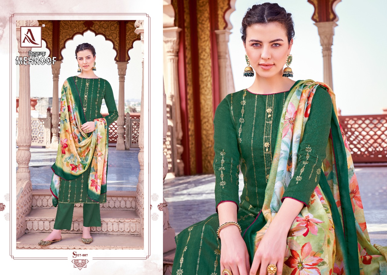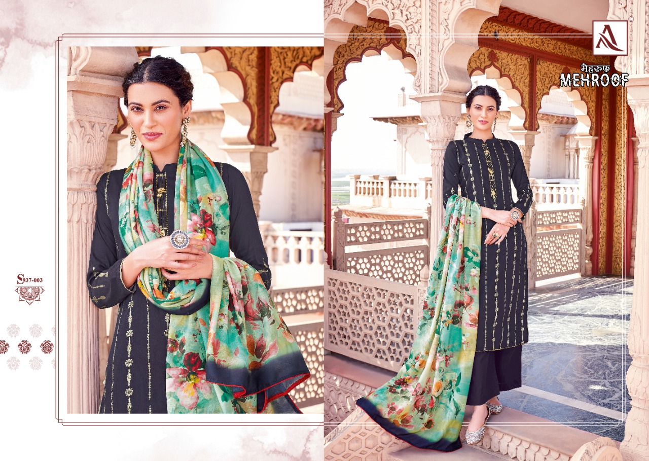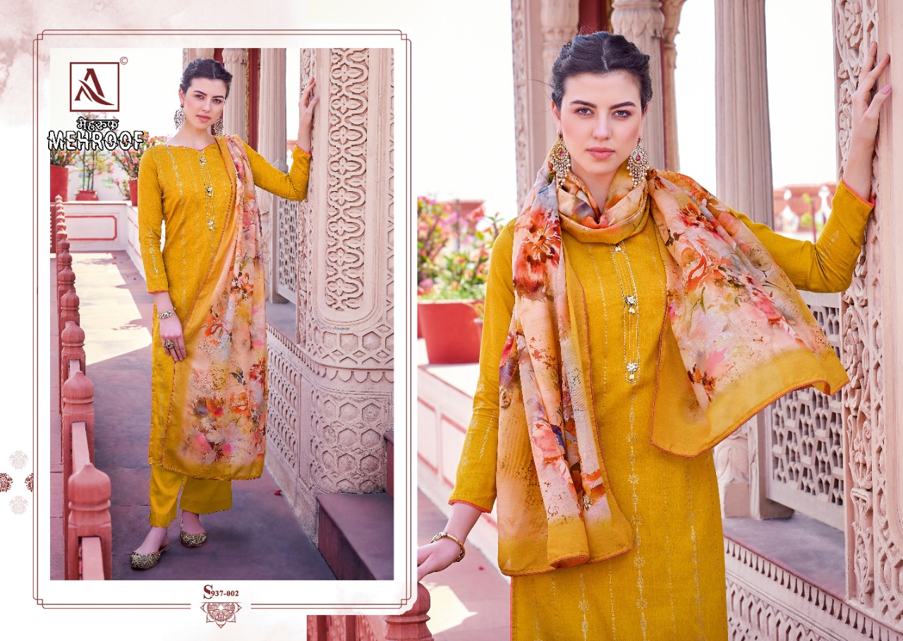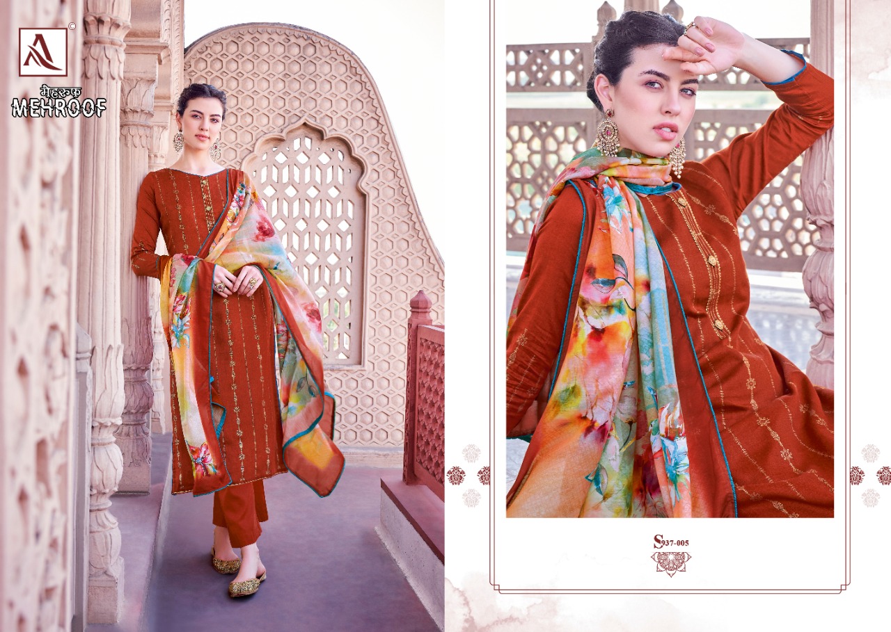Buy Online Mehroof By Alok Suit Dealer And Exporter Surat Gujarat 8 Pcs of Full Catalogue at Wholesale Price. Looking for Mehroof By Alok Suit Dealer And Exporter Surat Gujarat Full Catalouge at Best Price? Buy Now Mehroof By Alok Suit Dealer And Exporter Surat Gujarat at Wholesale Rate of Rs 6392 with Total 8 Pcs from authroized dealer and supplier of Brand. Cost of Each piece is just only Rs 799 which is very low and affordable price to resale the product in your retail store ,This is Surat based Wholesale Supplier & Dealer of Brand. Click on Brand name to Know more about Brand's products.Call or Whatsapp on 9898838984 for booking or enquiry