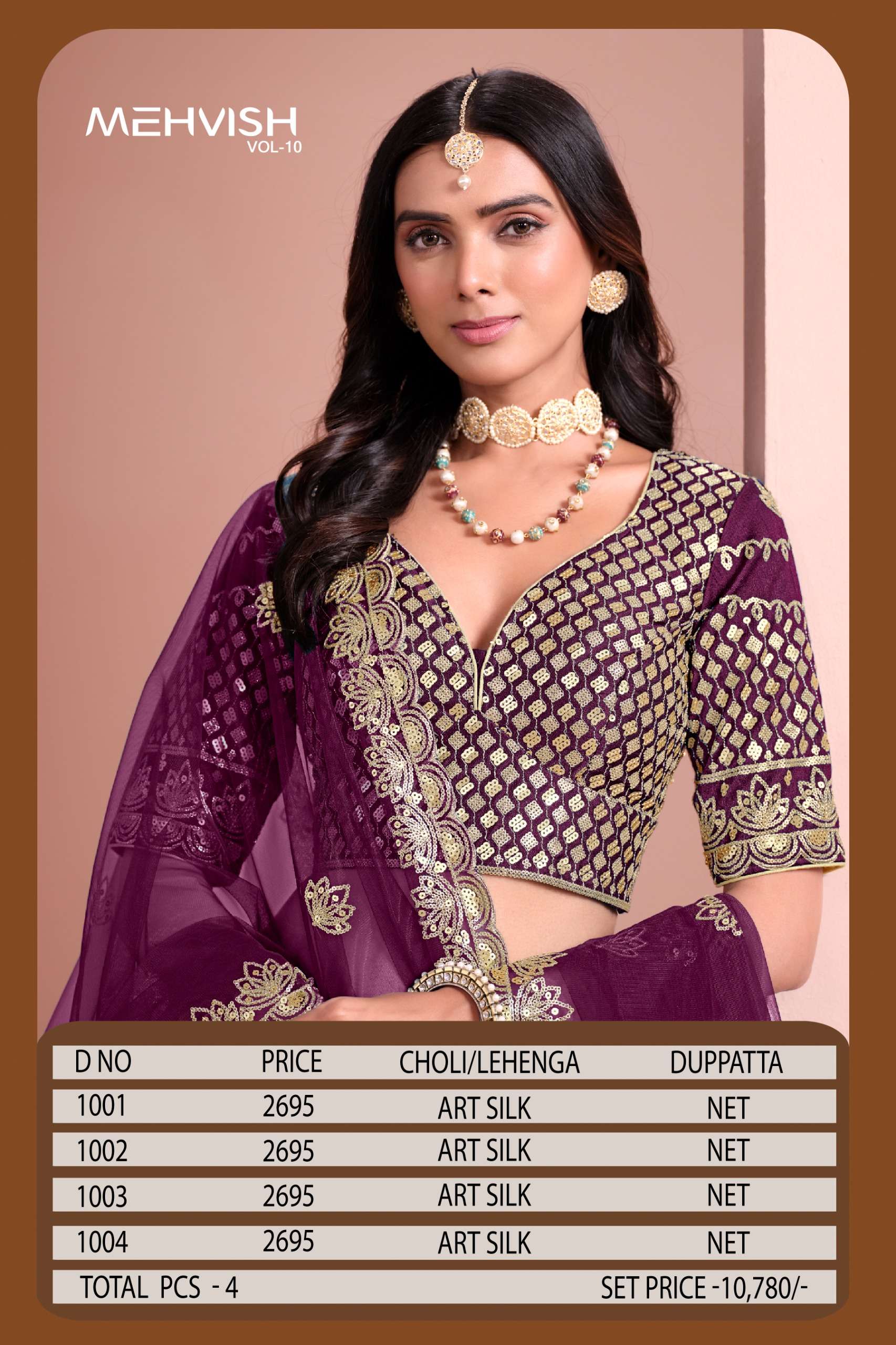 Buy Online MEHVISH VOL 10 Lehenga choli collection manufacturers surat 4 Pcs of Full Catalogue at Wholesale Price. Looking for MEHVISH VOL 10 Lehenga choli collection manufacturers surat Full Catalouge at Best Price? Buy Now MEHVISH VOL 10 Lehenga choli collection manufacturers surat at Wholesale Rate of Rs 10780 with Total 4 Pcs from authroized dealer and supplier of BRAND'S Brand. Cost of Each piece is just only Rs 2695 which is very low and affordable price to resale the product in your retail store ,This is Surat based Wholesale Supplier & Dealer of BRAND'S Brand. Click on Brand name to Know more about BRAND'S Brand's products.Call or Whatsapp on 9898838984 for booking or enquiry