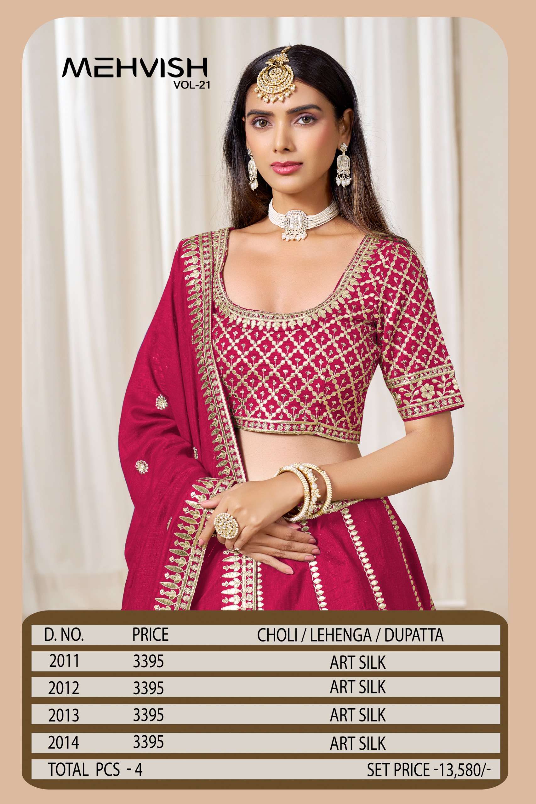 Buy Online MEHVISH VOL 21 Lehenga choli collection manufacturers surat 4 Pcs of Full Catalogue at Wholesale Price. Looking for MEHVISH VOL 21 Lehenga choli collection manufacturers surat Full Catalouge at Best Price? Buy Now MEHVISH VOL 21 Lehenga choli collection manufacturers surat at Wholesale Rate of Rs 13580 with Total 4 Pcs from authroized dealer and supplier of BRAND'S Brand. Cost of Each piece is just only Rs 3395 which is very low and affordable price to resale the product in your retail store ,This is Surat based Wholesale Supplier & Dealer of BRAND'S Brand. Click on Brand name to Know more about BRAND'S Brand's products.Call or Whatsapp on 9898838984 for booking or enquiry