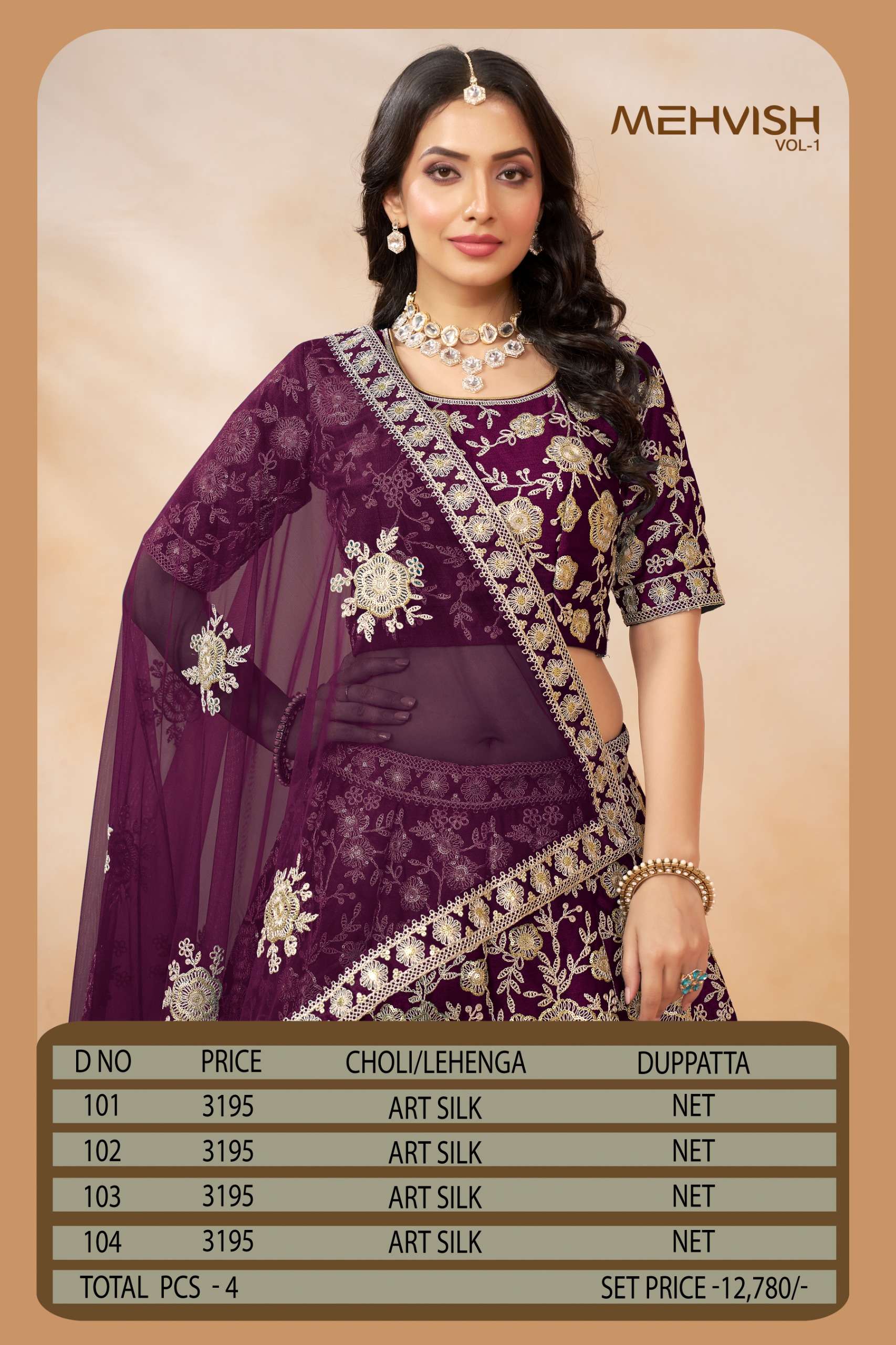 Buy Online MEHVISH VOL 2A lehenga choli collection manufacturers surat 4 Pcs of Full Catalogue at Wholesale Price. Looking for MEHVISH VOL 2A lehenga choli collection manufacturers surat Full Catalouge at Best Price? Buy Now MEHVISH VOL 2A lehenga choli collection manufacturers surat at Wholesale Rate of Rs 12780 with Total 4 Pcs from authroized dealer and supplier of BRAND'S Brand. Cost of Each piece is just only Rs 3195 which is very low and affordable price to resale the product in your retail store ,This is Surat based Wholesale Supplier & Dealer of BRAND'S Brand. Click on Brand name to Know more about BRAND'S Brand's products.Call or Whatsapp on 9898838984 for booking or enquiry