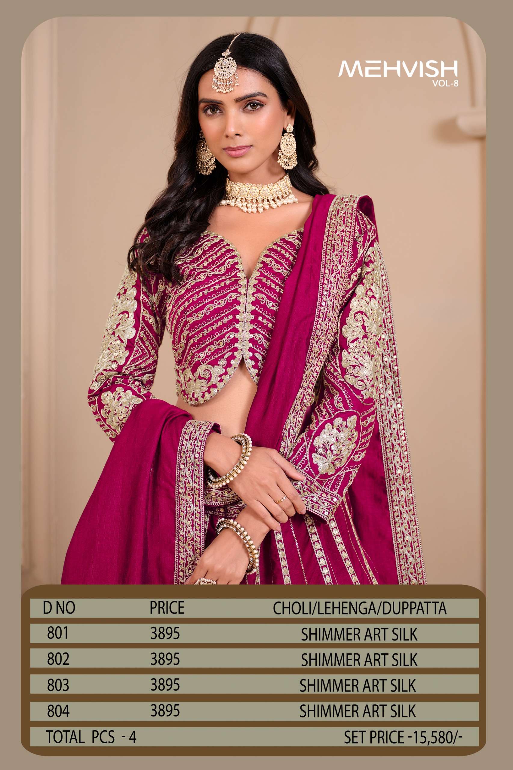 Buy Online MEHVISH VOL 8 ART SILK lehenga choli collection manufacturer surat 4 Pcs of Full Catalogue at Wholesale Price. Looking for MEHVISH VOL 8 ART SILK lehenga choli collection manufacturer surat Full Catalouge at Best Price? Buy Now MEHVISH VOL 8 ART SILK lehenga choli collection manufacturer surat at Wholesale Rate of Rs 15580 with Total 4 Pcs from authroized dealer and supplier of BRAND'S Brand. Cost of Each piece is just only Rs 3895 which is very low and affordable price to resale the product in your retail store ,This is Surat based Wholesale Supplier & Dealer of BRAND'S Brand. Click on Brand name to Know more about BRAND'S Brand's products.Call or Whatsapp on 9898838984 for booking or enquiry