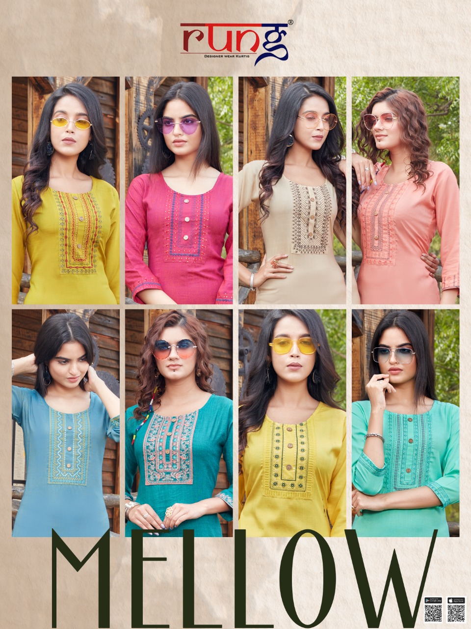Buy Online Mellow By Rung Manufacturer Traders Surat 8 Pcs of Full Catalogue at Wholesale Price. Looking for Mellow By Rung Manufacturer Traders Surat Full Catalouge at Best Price? Buy Now Mellow By Rung Manufacturer Traders Surat at Wholesale Rate of Rs 2960 with Total 8 Pcs from authroized dealer and supplier of Brand. Cost of Each piece is just only Rs 370 which is very low and affordable price to resale the product in your retail store ,This is Surat based Wholesale Supplier & Dealer of Brand. Click on Brand name to Know more about Brand's products.Call or Whatsapp on 9898838984 for booking or enquiry