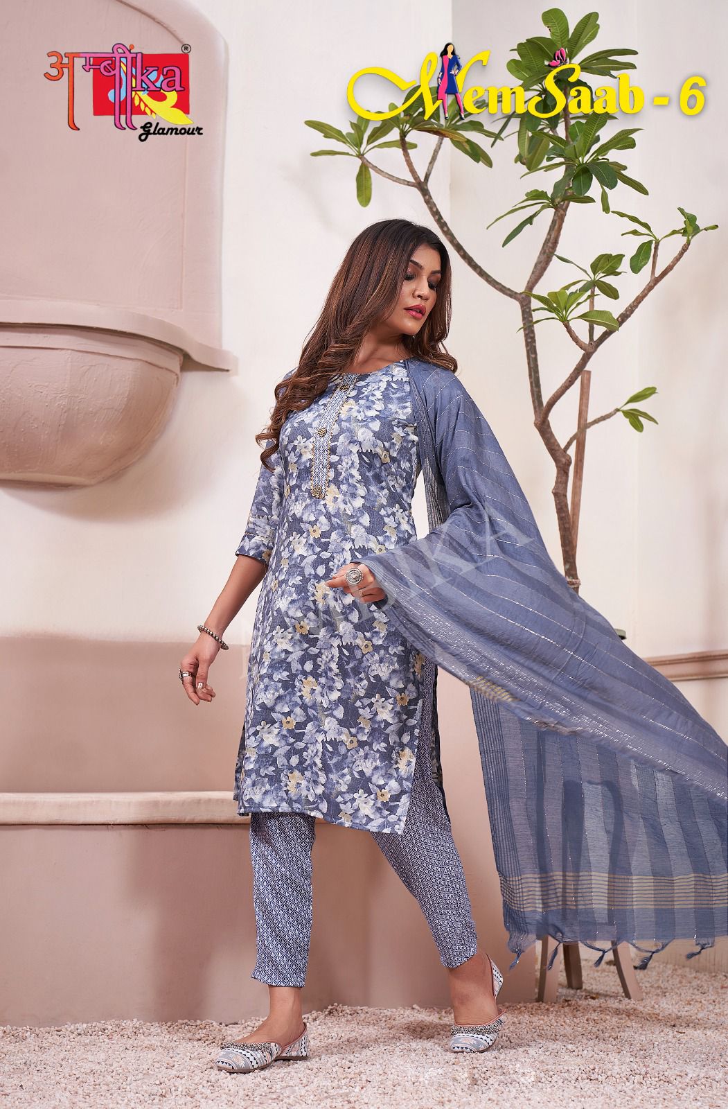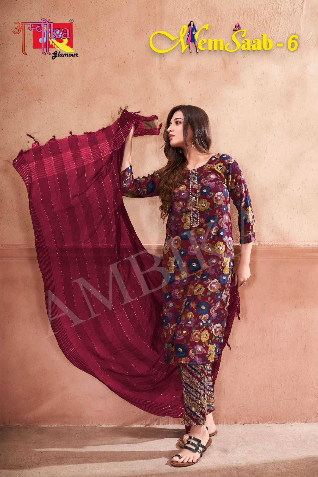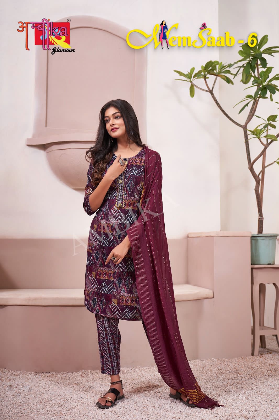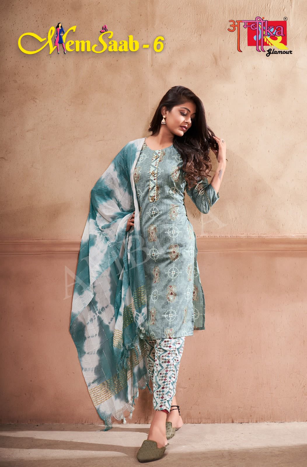 Buy Online Memsaab Ambica Kurties 80 Pcs of Full Catalogue at Wholesale Price. Looking for Memsaab Ambica Kurties Full Catalouge at Best Price? Buy Now Memsaab Ambica Kurties at Wholesale Rate of Rs 43600 with Total 80 Pcs from authroized dealer and supplier of AMBICA Brand. Cost of Each piece is just only Rs 545 which is very low and affordable price to resale the product in your retail store ,This is Surat based Wholesale Supplier & Dealer of AMBICA Brand. Click on Brand name to Know more about AMBICA Brand's products.Call or Whatsapp on 9898838984 for booking or enquiry