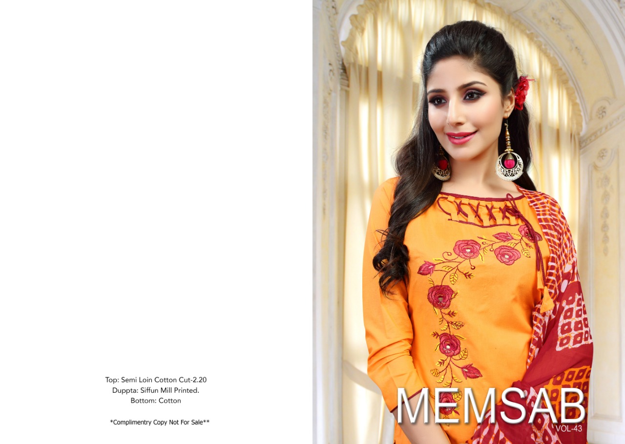 Buy Online Memsab By Best Choice Cotton Dress Materials Wholesale Supplier India 12 Pcs of Full Catalogue at Wholesale Price. Looking for Memsab By Best Choice Cotton Dress Materials Wholesale Supplier India Full Catalouge at Best Price? Buy Now Memsab By Best Choice Cotton Dress Materials Wholesale Supplier India at Wholesale Rate of Rs 4620 with Total 12 Pcs from authroized dealer and supplier of Brand. Cost of Each piece is just only Rs 385 which is very low and affordable price to resale the product in your retail store ,This is Surat based Wholesale Supplier & Dealer of Brand. Click on Brand name to Know more about Brand's products.Call or Whatsapp on 9898838984 for booking or enquiry