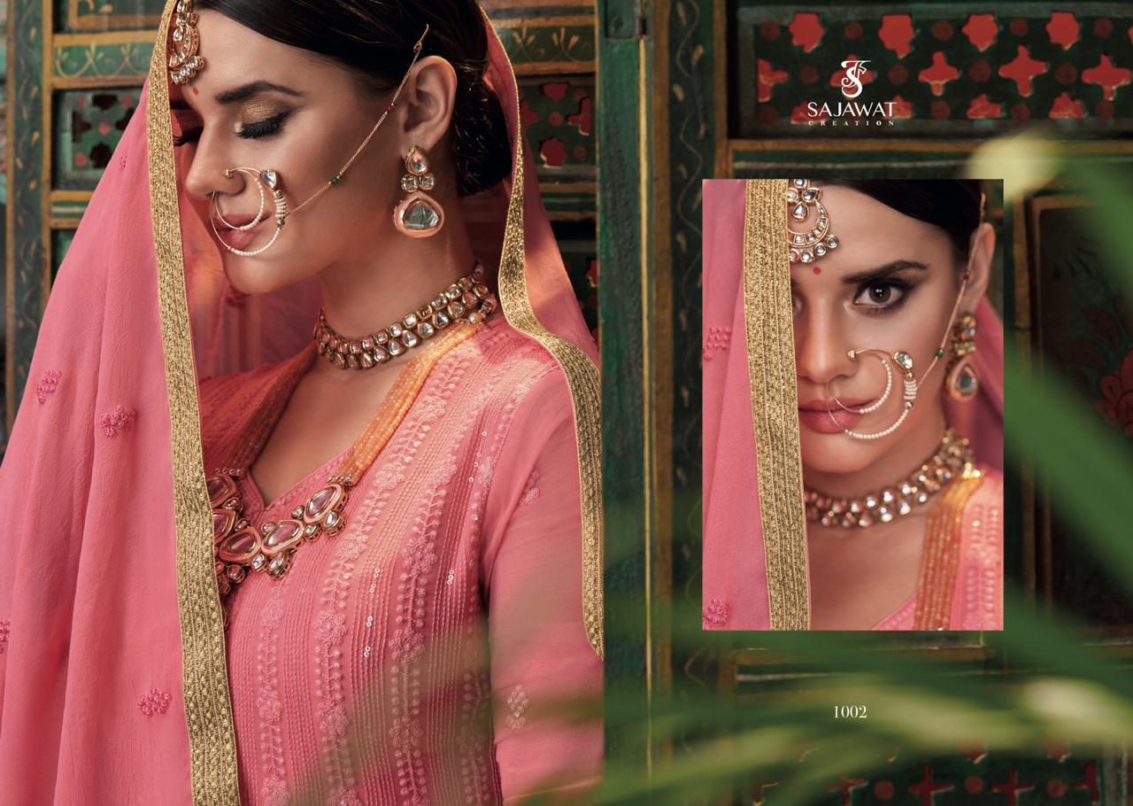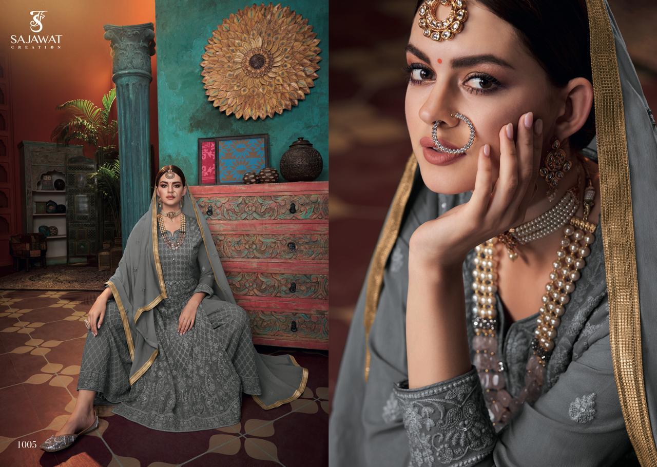 Buy Online Meraki 3 By Sajawat Series 1001 To 1005 Designer Party Wear Suits Wholesale Supplier Gujarat 5 Pcs of Full Catalogue at Wholesale Price. Looking for Meraki 3 By Sajawat Series 1001 To 1005 Designer Party Wear Suits Wholesale Supplier Gujarat Full Catalouge at Best Price? Buy Now Meraki 3 By Sajawat Series 1001 To 1005 Designer Party Wear Suits Wholesale Supplier Gujarat at Wholesale Rate of Rs 11250 with Total 5 Pcs from authroized dealer and supplier of SAJAWAT Brand. Cost of Each piece is just only Rs 2250 which is very low and affordable price to resale the product in your retail store ,This is Surat based Wholesale Supplier & Dealer of SAJAWAT Brand. Click on Brand name to Know more about SAJAWAT Brand's products.Call or Whatsapp on 9898838984 for booking or enquiry