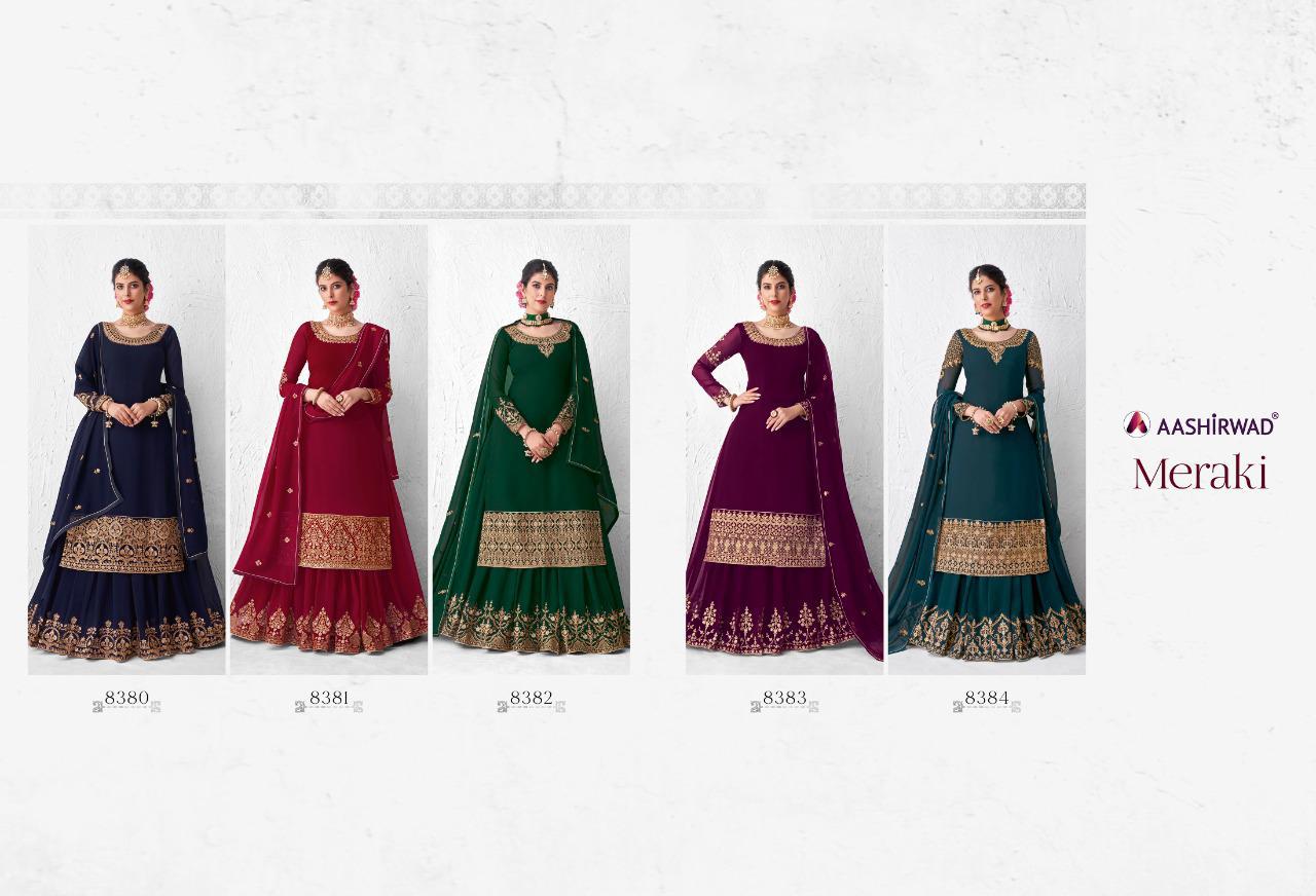 AASHIRWAD Meraki (5 pcs ) Top - Real georgette Inner - Dull Santoon Bottom- Real georgette free size stitch lehnga with dull Santoon inner Duptta - Real georgette Price -1995 Gst - 12 percent extra Set to set Dispatching in 3 days !!! |