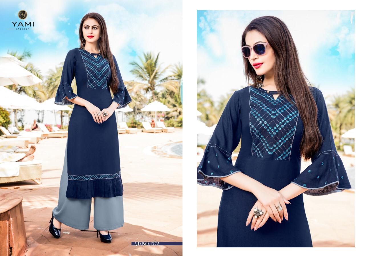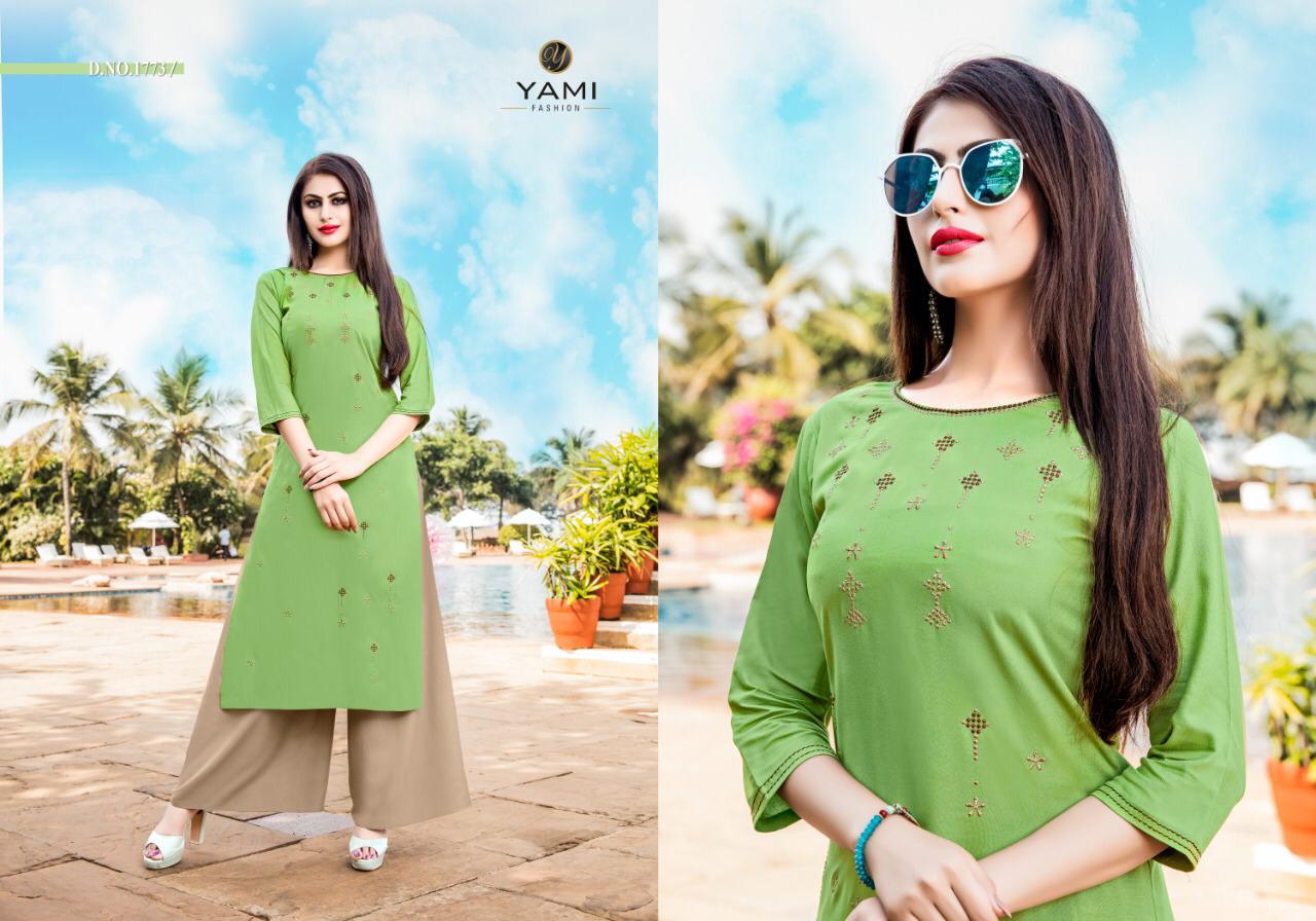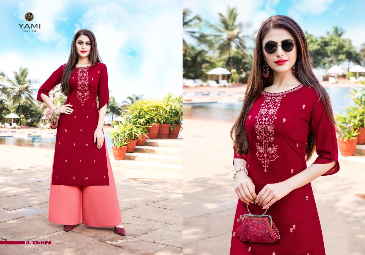 Buy Online Meraki Vol 2 By Yami Fashion Reyon Kurti Plazzo Set Wholesale Supplier And Dealer Surat 8 Pcs of Full Catalogue at Wholesale Price. Looking for Meraki Vol 2 By Yami Fashion Reyon Kurti Plazzo Set Wholesale Supplier And Dealer Surat Full Catalouge at Best Price? Buy Now Meraki Vol 2 By Yami Fashion Reyon Kurti Plazzo Set Wholesale Supplier And Dealer Surat at Wholesale Rate of Rs 6000 with Total 8 Pcs from authroized dealer and supplier of Brand. Cost of Each piece is just only Rs 750 which is very low and affordable price to resale the product in your retail store ,This is Surat based Wholesale Supplier & Dealer of Brand. Click on Brand name to Know more about Brand's products.Call or Whatsapp on 9898838984 for booking or enquiry