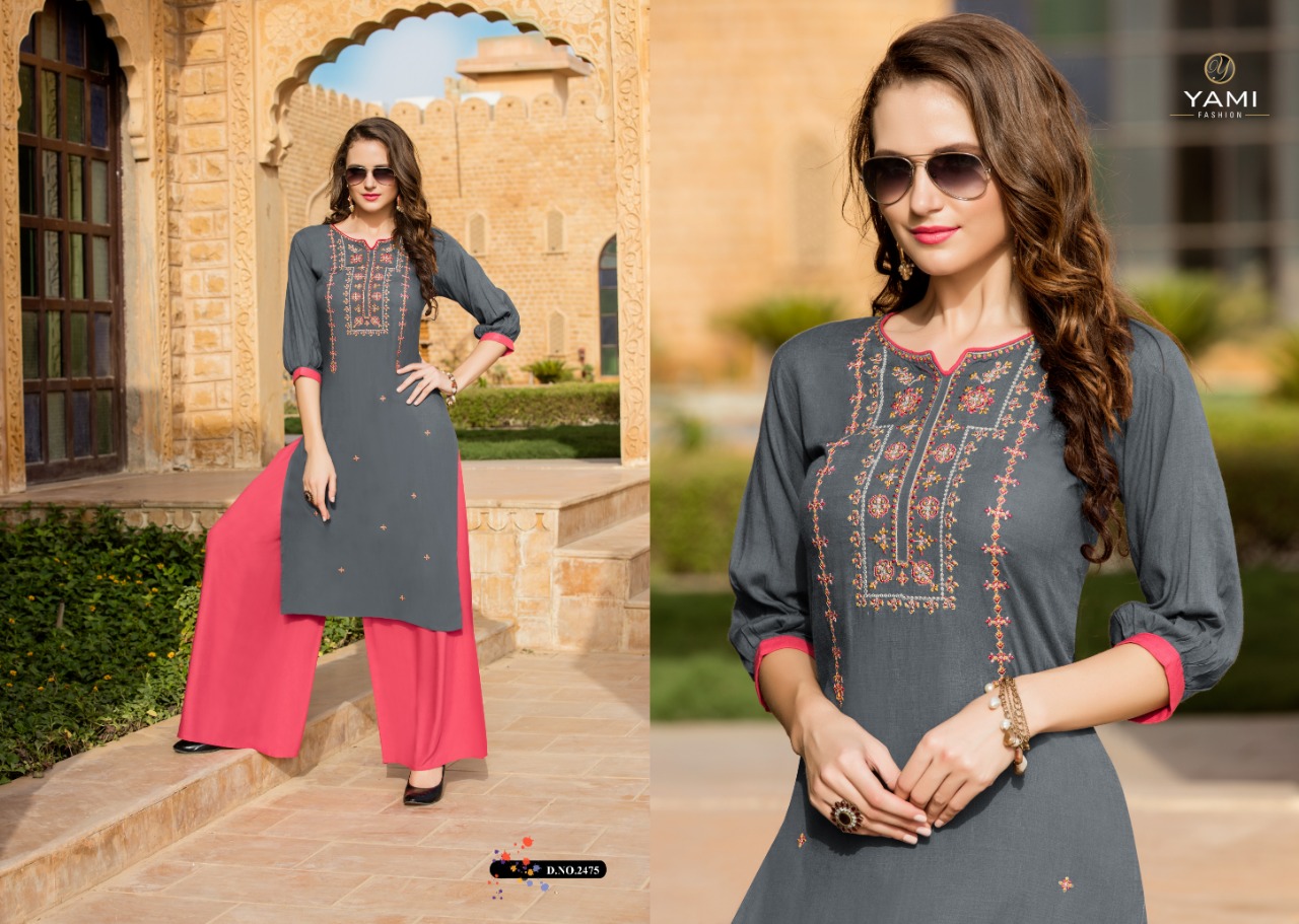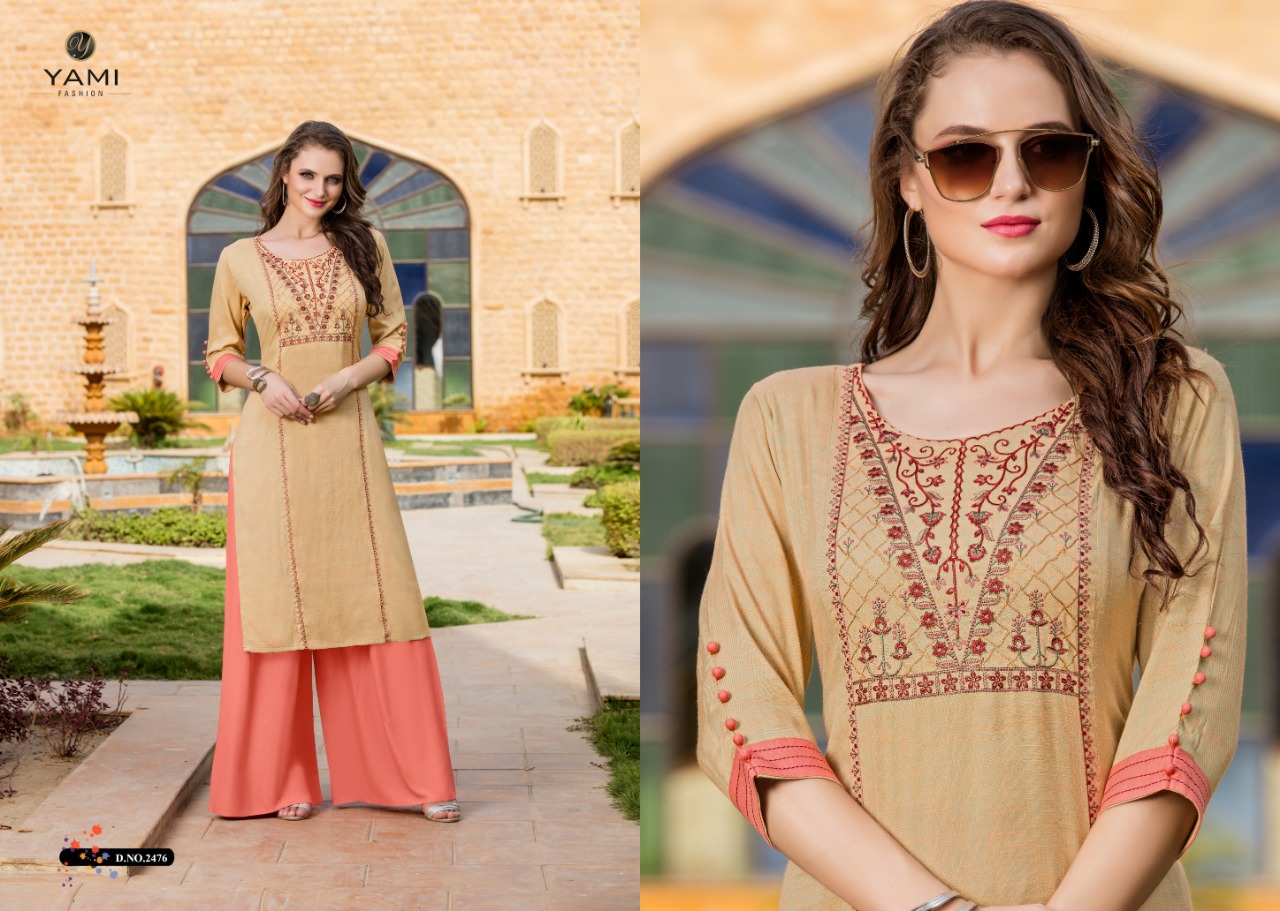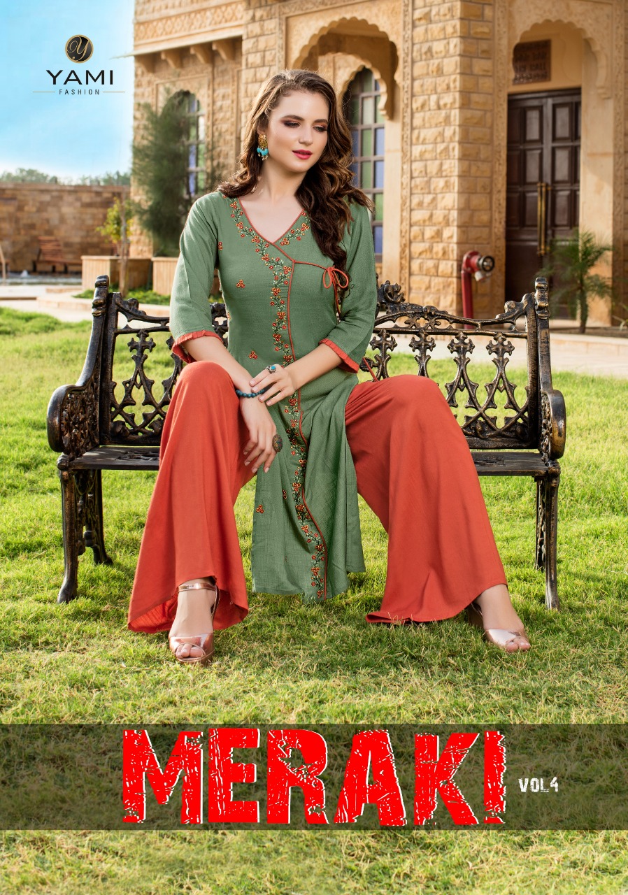 Buy Online Meraki Vol 4 By Yami Fashion Designer Kurtis With Plazzo Wholesale Supplier India 8 Pcs of Full Catalogue at Wholesale Price. Looking for Meraki Vol 4 By Yami Fashion Designer Kurtis With Plazzo Wholesale Supplier India Full Catalouge at Best Price? Buy Now Meraki Vol 4 By Yami Fashion Designer Kurtis With Plazzo Wholesale Supplier India at Wholesale Rate of Rs 6000 with Total 8 Pcs from authroized dealer and supplier of Brand. Cost of Each piece is just only Rs 750 which is very low and affordable price to resale the product in your retail store ,This is Surat based Wholesale Supplier & Dealer of Brand. Click on Brand name to Know more about Brand's products.Call or Whatsapp on 9898838984 for booking or enquiry
