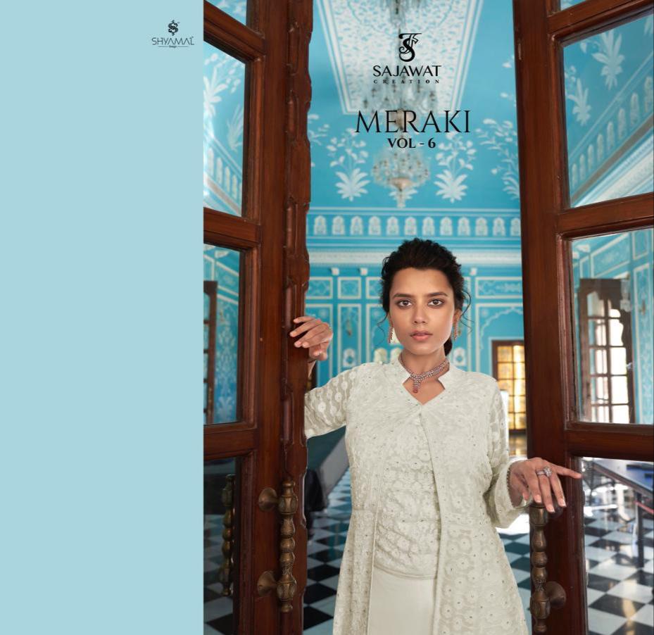 Buy Online Meraki Vol 6 By Sajawat Creation Manufacturer And Dealer From All Over India 5 Pcs of Full Catalogue at Wholesale Price. Looking for Meraki Vol 6 By Sajawat Creation Manufacturer And Dealer From All Over India Full Catalouge at Best Price? Buy Now Meraki Vol 6 By Sajawat Creation Manufacturer And Dealer From All Over India at Wholesale Rate of Rs 11975 with Total 5 Pcs from authroized dealer and supplier of SAJAWAT Brand. Cost of Each piece is just only Rs 2395 which is very low and affordable price to resale the product in your retail store ,This is Surat based Wholesale Supplier & Dealer of SAJAWAT Brand. Click on Brand name to Know more about SAJAWAT Brand's products.Call or Whatsapp on 9898838984 for booking or enquiry