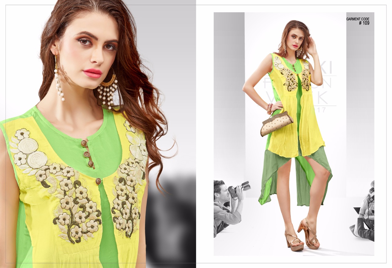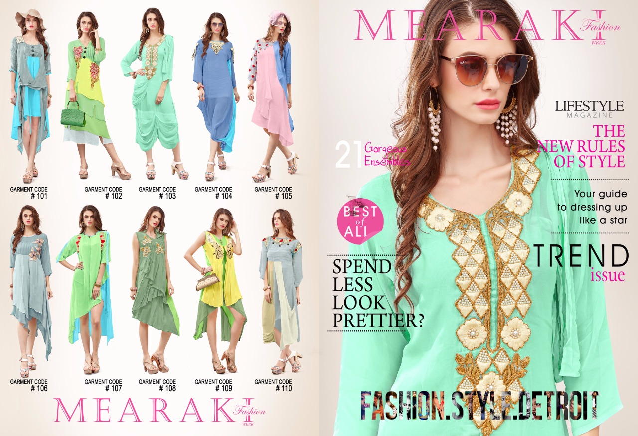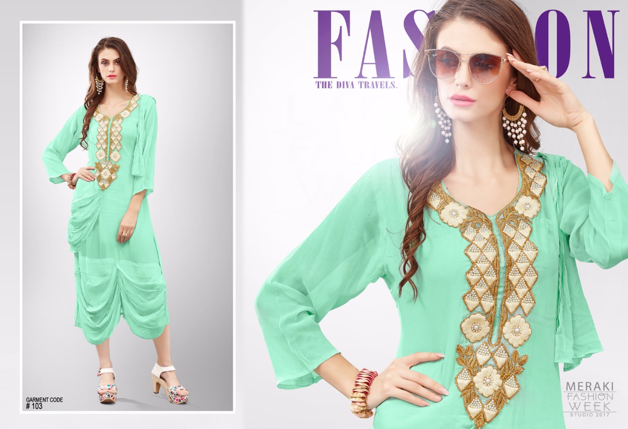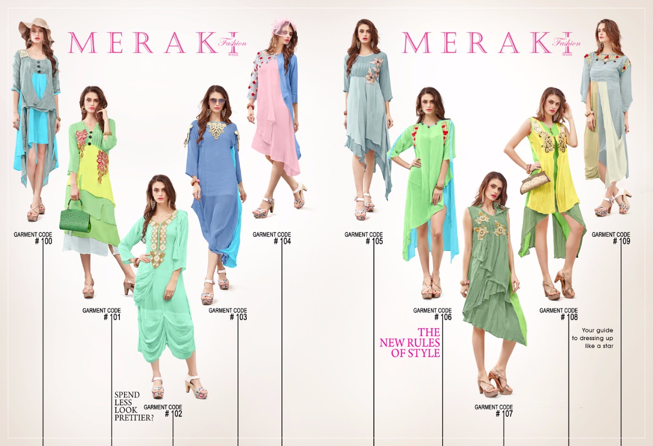 Buy Online Meraki Western Style Georgette Kurtis Wholesale Dealer And Supplier Surat 10 Pcs of Full Catalogue at Wholesale Price. Looking for Meraki Western Style Georgette Kurtis Wholesale Dealer And Supplier Surat Full Catalouge at Best Price? Buy Now Meraki Western Style Georgette Kurtis Wholesale Dealer And Supplier Surat at Wholesale Rate of Rs 8500 with Total 10 Pcs from authroized dealer and supplier of MERAKI Brand. Cost of Each piece is just only Rs 850 which is very low and affordable price to resale the product in your retail store ,This is Surat based Wholesale Supplier & Dealer of MERAKI Brand. Click on Brand name to Know more about MERAKI Brand's products.Call or Whatsapp on 9898838984 for booking or enquiry