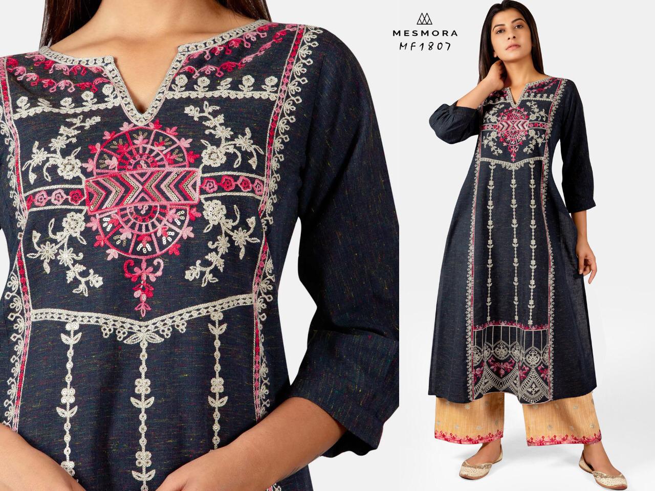 Buy Online Mesmora Designer Kurtis With Bottom Wholesale Supplier And Dealer Surat 8 Pcs of Full Catalogue at Wholesale Price. Looking for Mesmora Designer Kurtis With Bottom Wholesale Supplier And Dealer Surat Full Catalouge at Best Price? Buy Now Mesmora Designer Kurtis With Bottom Wholesale Supplier And Dealer Surat at Wholesale Rate of Rs 9592 with Total 8 Pcs from authroized dealer and supplier of Brand. Cost of Each piece is just only Rs 1199 which is very low and affordable price to resale the product in your retail store ,This is Surat based Wholesale Supplier & Dealer of Brand. Click on Brand name to Know more about Brand's products.Call or Whatsapp on 9898838984 for booking or enquiry