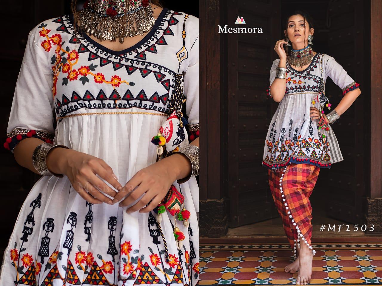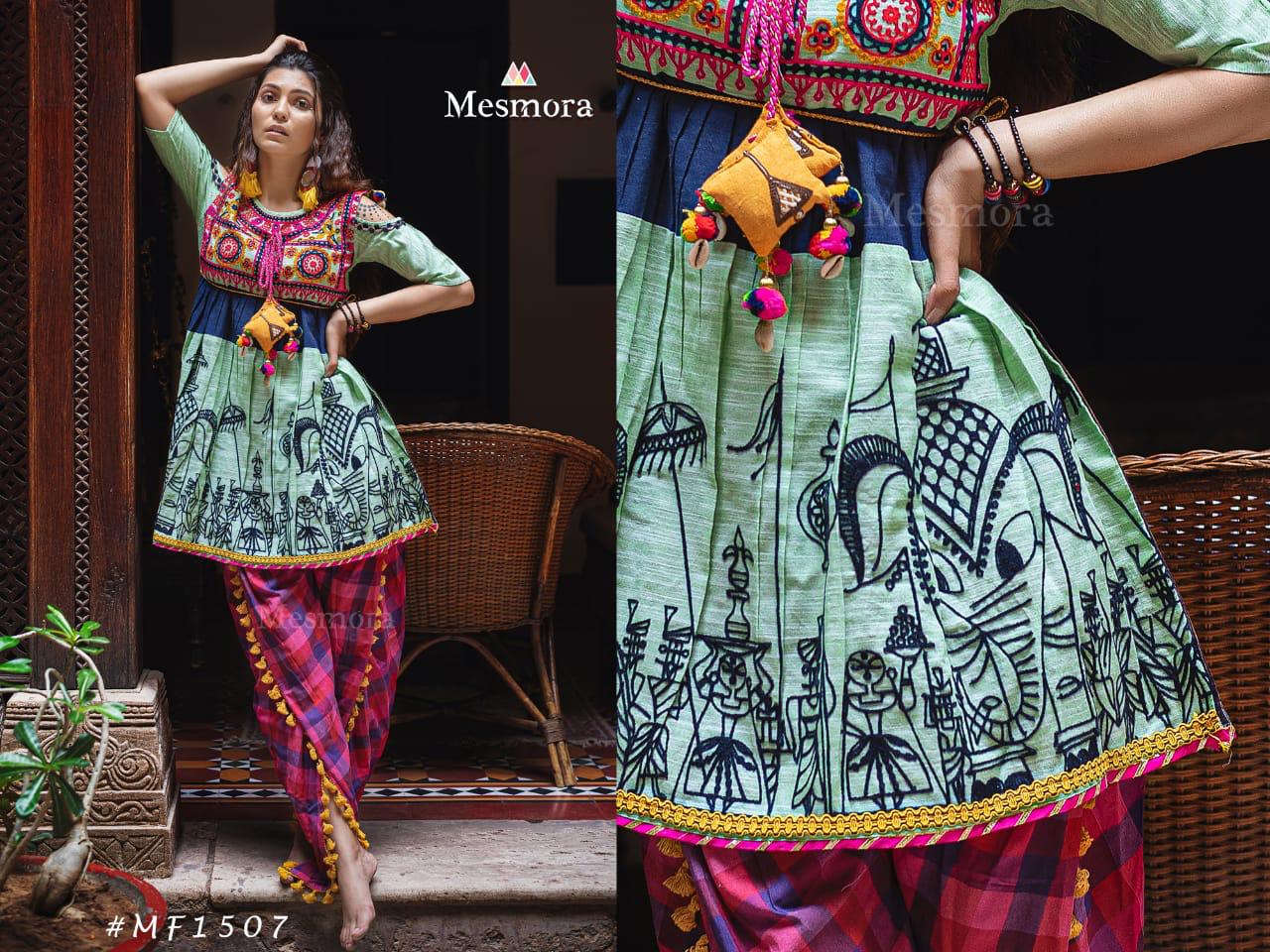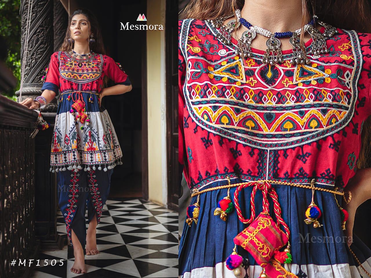 Mesmora kedia collection vol 2 kath putli female kedia by mesmora surat ??? *After the success of DHOLIDA* *Mesmora brings you* *KATH-PUTLI FEMALE KEDIA COLLECTION vol-2* ??? *The most awaited tribal collection* we bring you the traditional art of Gujarat with ancient folk and contemporary motifs transformed in our selfmade silhouettes -?*KEDIA AND TULIP PANTS*? This navratri lets rock n rolls with a stream of colours, dhinglis peacocks, parrots, elephants and gujarati folks. *Fabric and Description* 8 colorful heavily embroidered kedias and embroidered tulip pants in pure khadi. The sound of KODIs is going to mesmorize you The hand made potli latkans are going to make you feel rich and special. *Sizes* M-36" chest and pants accordingly xl-40" chest and pants accordingly length of kedia 28" and pants 40" common in both sizes *IMP NOTE* *Jewelleries and hand purses are not part of the product* Full set 999+5% *price* 1099+5% Bookings open for set to set (8 pcs in bag) dispatching from 1 august singles dispatching after 25 th august *Single no any less* Gst ship extra |