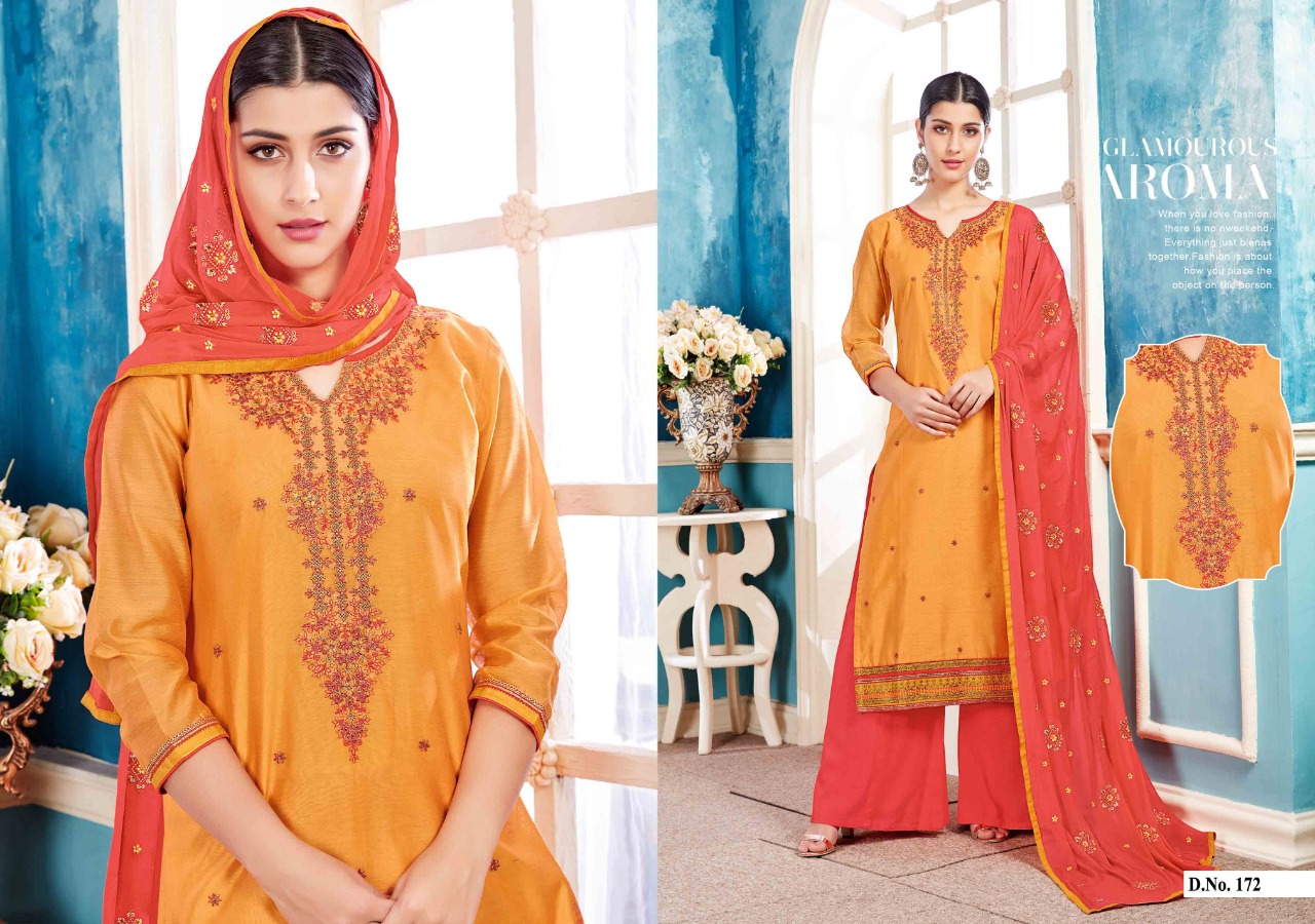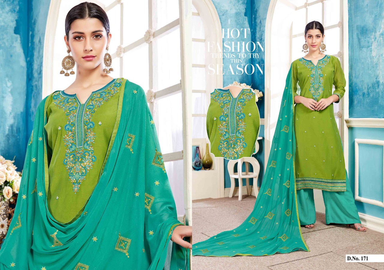 Buy Online Metrix By Kalarang 171 Series Chanderi Silk Salwar Kameez Catlog Wholesale Dealer And Supplier Surat 4 Pcs of Full Catalogue at Wholesale Price. Looking for Metrix By Kalarang 171 Series Chanderi Silk Salwar Kameez Catlog Wholesale Dealer And Supplier Surat Full Catalouge at Best Price? Buy Now Metrix By Kalarang 171 Series Chanderi Silk Salwar Kameez Catlog Wholesale Dealer And Supplier Surat at Wholesale Rate of Rs 2700 with Total 4 Pcs from authroized dealer and supplier of KALARANG Brand. Cost of Each piece is just only Rs 675 which is very low and affordable price to resale the product in your retail store ,This is Surat based Wholesale Supplier & Dealer of KALARANG Brand. Click on Brand name to Know more about KALARANG Brand's products.Call or Whatsapp on 9898838984 for booking or enquiry