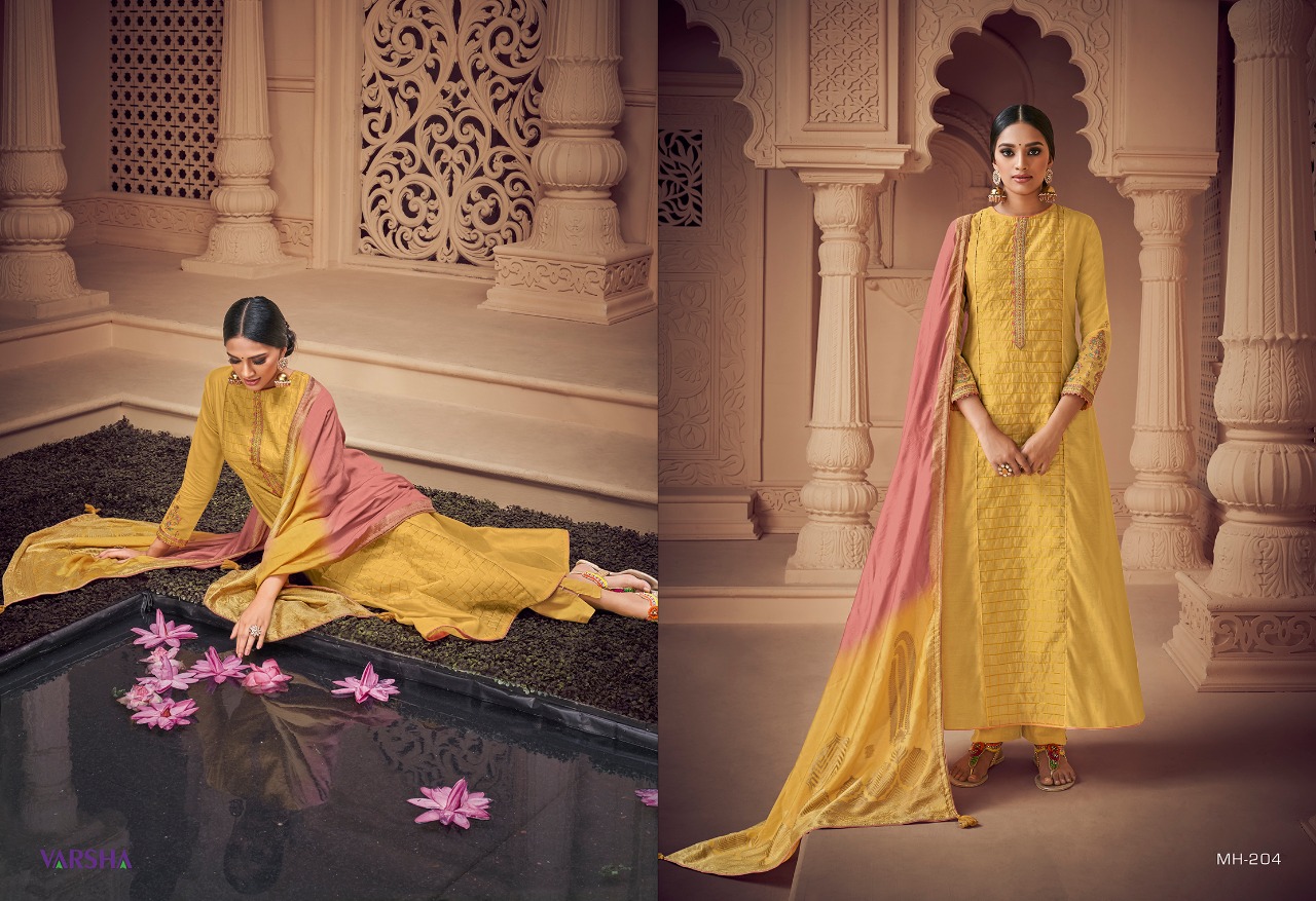 Buy Online Mihira By Varsha Embroidered Designer Suits Wholesale Supplier And Dealer Gujarat 8 Pcs of Full Catalogue at Wholesale Price. Looking for Mihira By Varsha Embroidered Designer Suits Wholesale Supplier And Dealer Gujarat Full Catalouge at Best Price? Buy Now Mihira By Varsha Embroidered Designer Suits Wholesale Supplier And Dealer Gujarat at Wholesale Rate of Rs 11120 with Total 8 Pcs from authroized dealer and supplier of Brand. Cost of Each piece is just only Rs 1390 which is very low and affordable price to resale the product in your retail store ,This is Surat based Wholesale Supplier & Dealer of Brand. Click on Brand name to Know more about Brand's products.Call or Whatsapp on 9898838984 for booking or enquiry