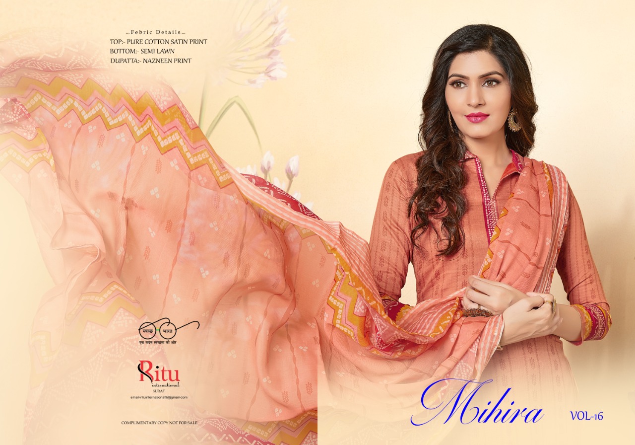 Buy Online Mihira Vol 16 By Nitya Nx Dress Materials Wholesale Supplier And Dealer Surat 10 Pcs of Full Catalogue at Wholesale Price. Looking for Mihira Vol 16 By Nitya Nx Dress Materials Wholesale Supplier And Dealer Surat Full Catalouge at Best Price? Buy Now Mihira Vol 16 By Nitya Nx Dress Materials Wholesale Supplier And Dealer Surat at Wholesale Rate of Rs 4500 with Total 10 Pcs from authroized dealer and supplier of Brand. Cost of Each piece is just only Rs 450 which is very low and affordable price to resale the product in your retail store ,This is Surat based Wholesale Supplier & Dealer of Brand. Click on Brand name to Know more about Brand's products.Call or Whatsapp on 9898838984 for booking or enquiry