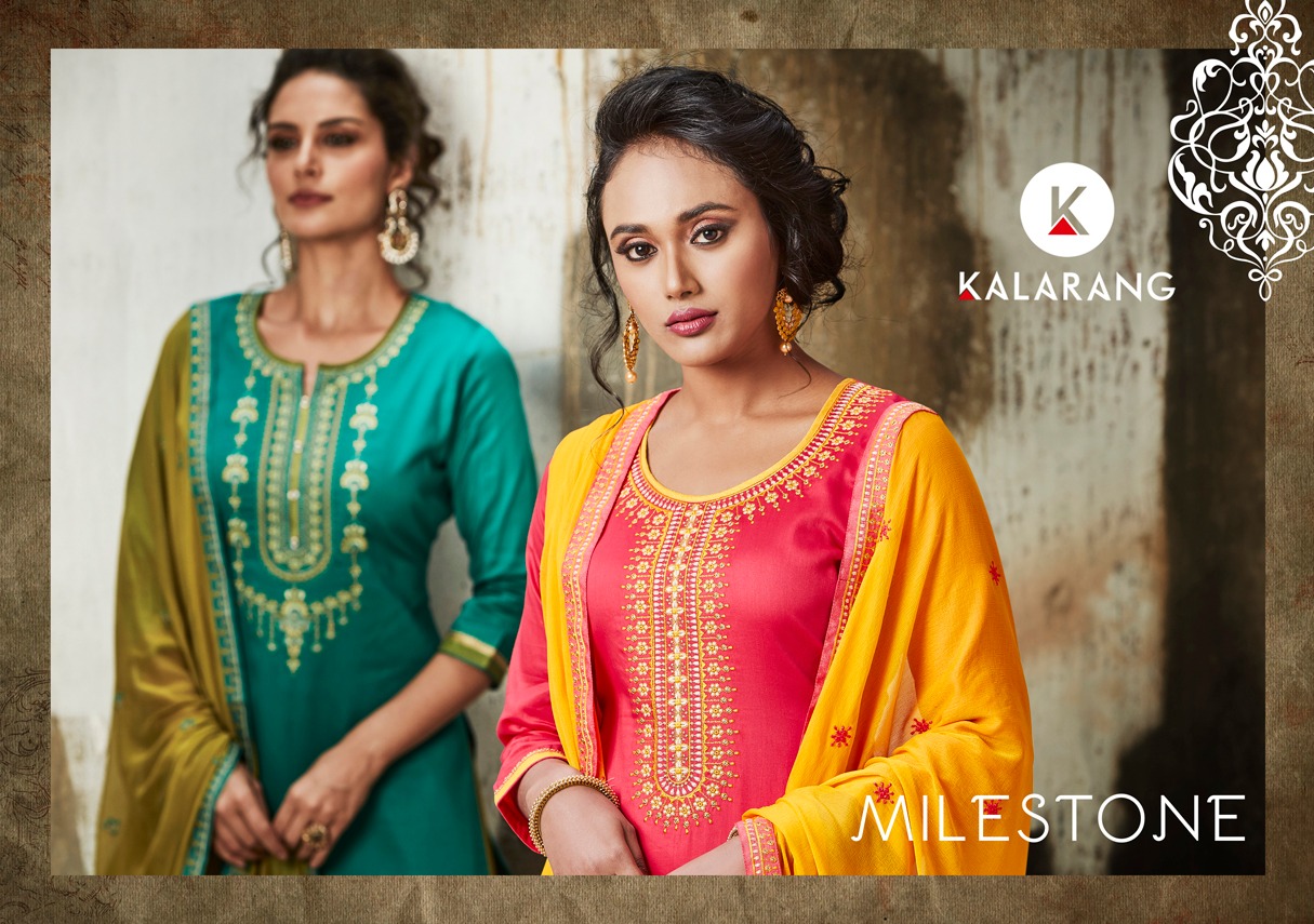 Buy Online Milestone By Kalarang Cotton Work Designer Suits Wholesale Supplier And Dealer Surat 4 Pcs of Full Catalogue at Wholesale Price. Looking for Milestone By Kalarang Cotton Work Designer Suits Wholesale Supplier And Dealer Surat Full Catalouge at Best Price? Buy Now Milestone By Kalarang Cotton Work Designer Suits Wholesale Supplier And Dealer Surat at Wholesale Rate of Rs 3196 with Total 4 Pcs from authroized dealer and supplier of KALARANG Brand. Cost of Each piece is just only Rs 799 which is very low and affordable price to resale the product in your retail store ,This is Surat based Wholesale Supplier & Dealer of KALARANG Brand. Click on Brand name to Know more about KALARANG Brand's products.Call or Whatsapp on 9898838984 for booking or enquiry