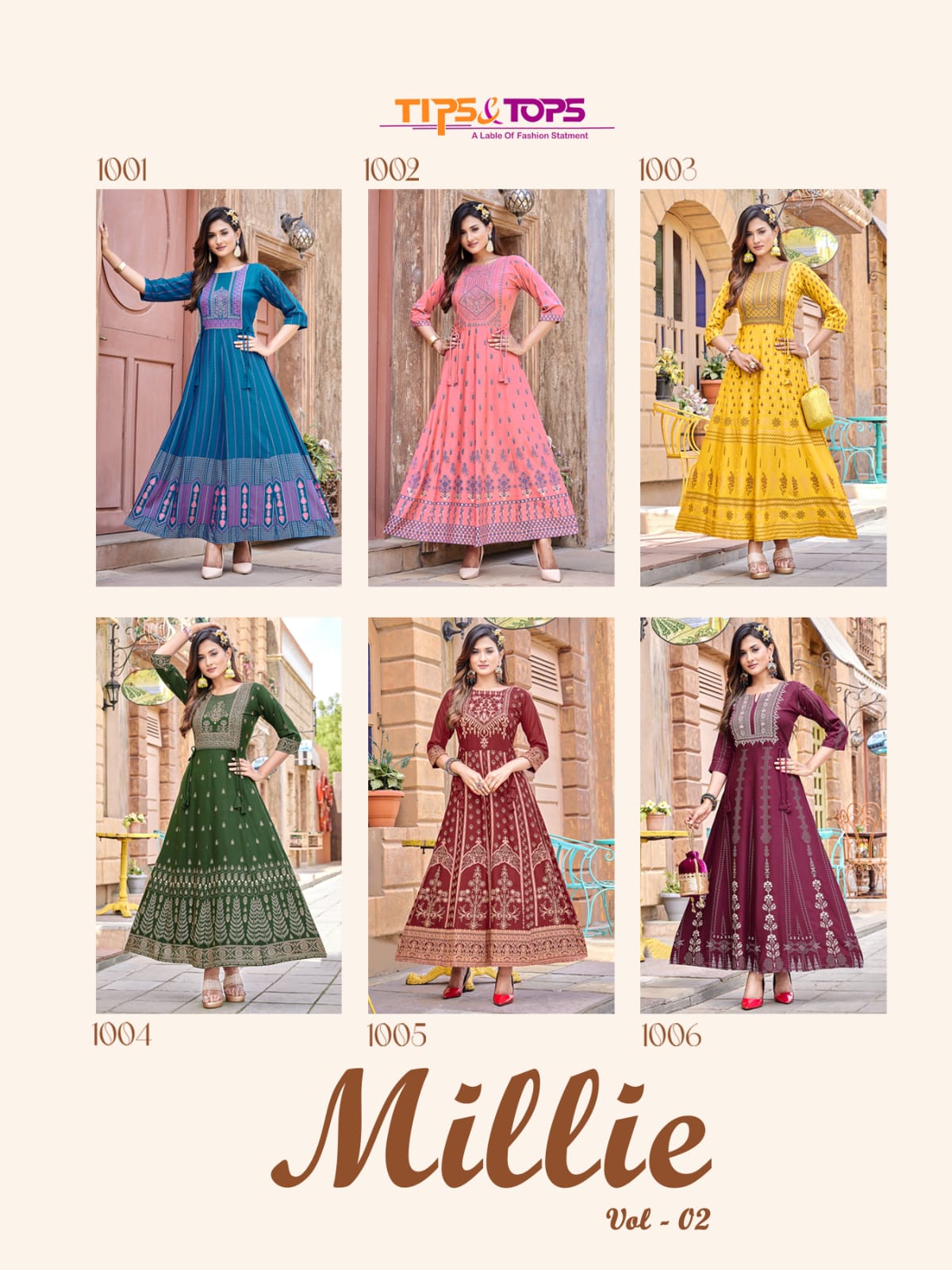 Buy Online Millie Vol 2 By Tips Tops Long Gown Collection Wholesaler Supplier From Surat 6 Pcs of Full Catalogue at Wholesale Price. Looking for Millie Vol 2 By Tips Tops Long Gown Collection Wholesaler Supplier From Surat Full Catalouge at Best Price? Buy Now Millie Vol 2 By Tips Tops Long Gown Collection Wholesaler Supplier From Surat at Wholesale Rate of Rs 2970 with Total 6 Pcs from authroized dealer and supplier of Brand. Cost of Each piece is just only Rs 495 which is very low and affordable price to resale the product in your retail store ,This is Surat based Wholesale Supplier & Dealer of Brand. Click on Brand name to Know more about Brand's products.Call or Whatsapp on 9898838984 for booking or enquiry