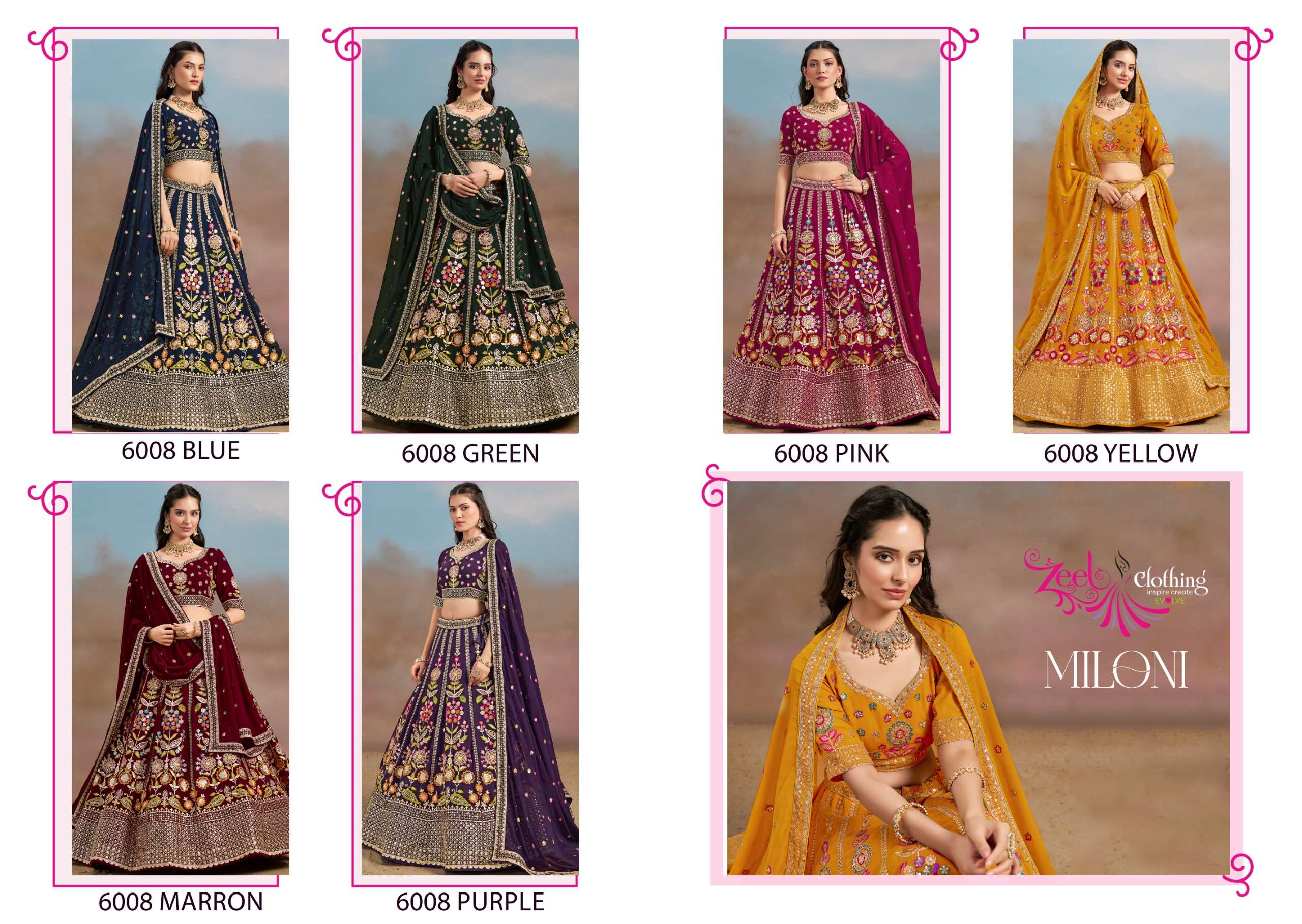 Buy Online MILONI by Zeel Clothing lehenga collection manufacturer Surat 6 Pcs of Full Catalogue at Wholesale Price. Looking for MILONI by Zeel Clothing lehenga collection manufacturer Surat Full Catalouge at Best Price? Buy Now MILONI by Zeel Clothing lehenga collection manufacturer Surat at Wholesale Rate of Rs 18000 with Total 6 Pcs from authroized dealer and supplier of Zeel Clothing Brand. Cost of Each piece is just only Rs 3000 which is very low and affordable price to resale the product in your retail store ,This is Surat based Wholesale Supplier & Dealer of Zeel Clothing Brand. Click on Brand name to Know more about Zeel Clothing Brand's products.Call or Whatsapp on 9898838984 for booking or enquiry