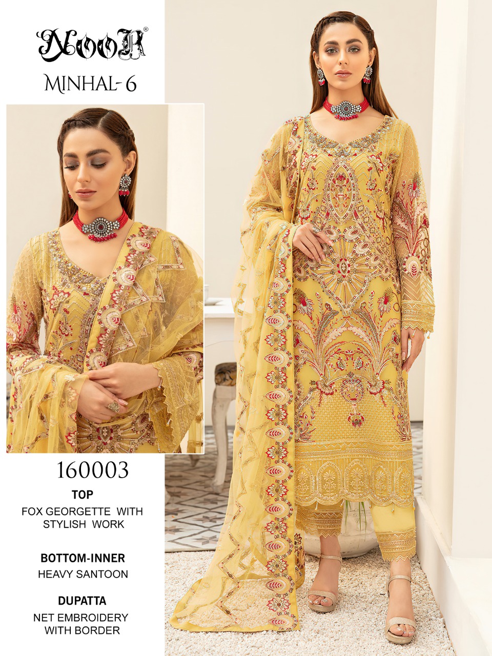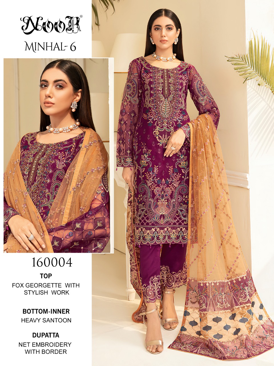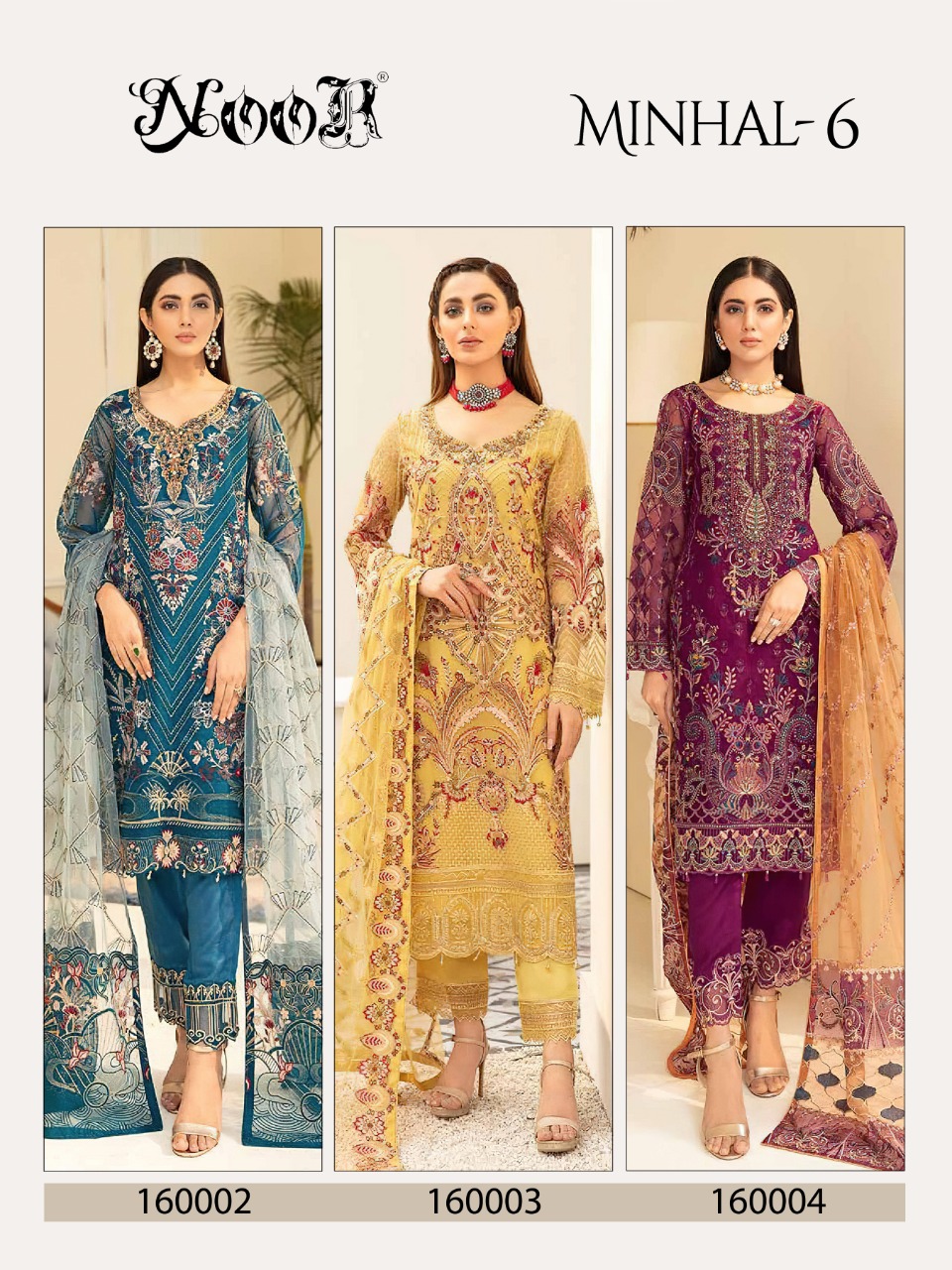Buy Online Minhal Vol 6 By Noor Wholesaler Supplier From Surat 3 Pcs of Full Catalogue at Wholesale Price. Looking for Minhal Vol 6 By Noor Wholesaler Supplier From Surat Full Catalouge at Best Price? Buy Now Minhal Vol 6 By Noor Wholesaler Supplier From Surat at Wholesale Rate of Rs 3897 with Total 3 Pcs from authroized dealer and supplier of Brand. Cost of Each piece is just only Rs 1299 which is very low and affordable price to resale the product in your retail store ,This is Surat based Wholesale Supplier & Dealer of Brand. Click on Brand name to Know more about Brand's products.Call or Whatsapp on 9898838984 for booking or enquiry