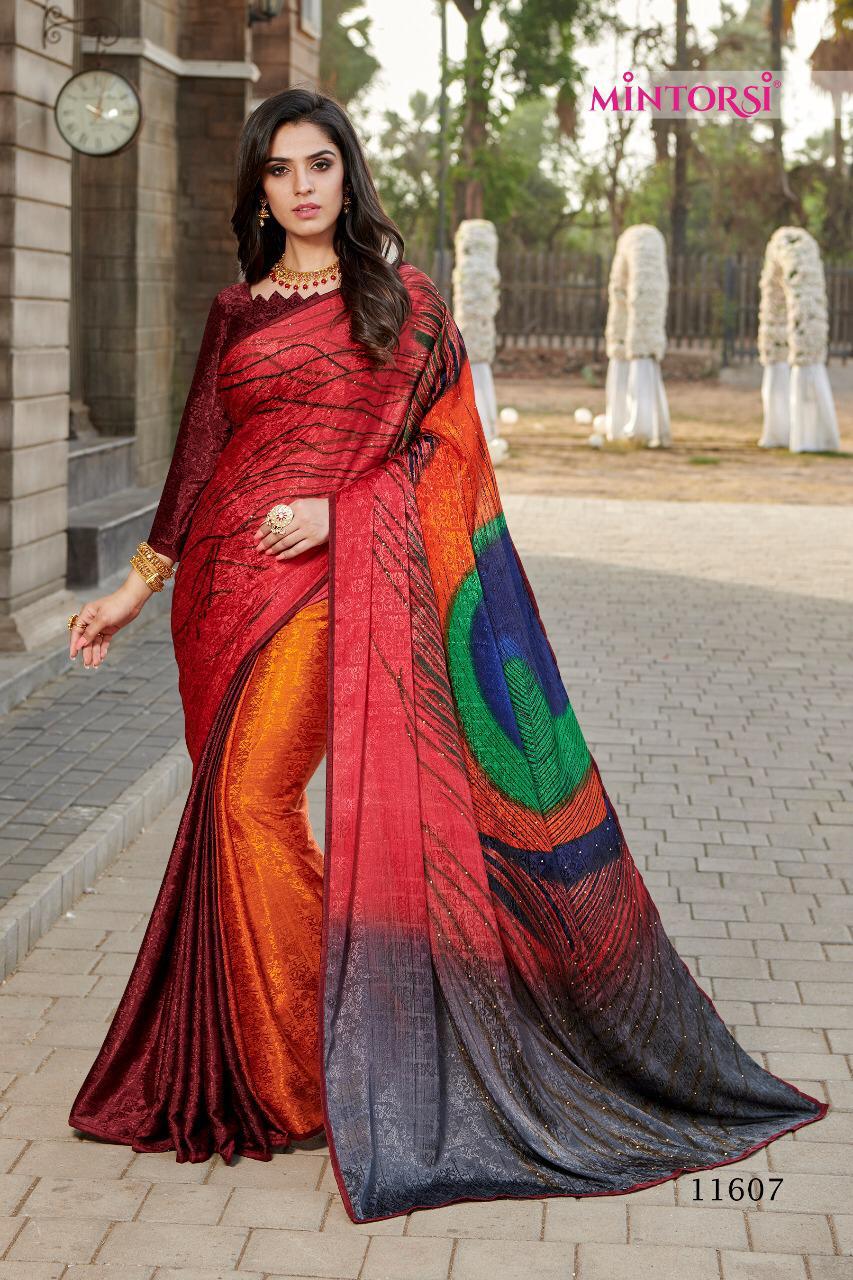 Buy Online Mintorsi Series 11601 To 11608 Silk Designer Sarees Set Nd Single Wholesale Supplier Gujarat 8 Pcs of Full Catalogue at Wholesale Price. Looking for Mintorsi Series 11601 To 11608 Silk Designer Sarees Set Nd Single Wholesale Supplier Gujarat Full Catalouge at Best Price? Buy Now Mintorsi Series 11601 To 11608 Silk Designer Sarees Set Nd Single Wholesale Supplier Gujarat at Wholesale Rate of Rs 7120 with Total 8 Pcs from authroized dealer and supplier of BRAND'S Brand. Cost of Each piece is just only Rs 890 which is very low and affordable price to resale the product in your retail store ,This is Surat based Wholesale Supplier & Dealer of BRAND'S Brand. Click on Brand name to Know more about BRAND'S Brand's products.Call or Whatsapp on 9898838984 for booking or enquiry