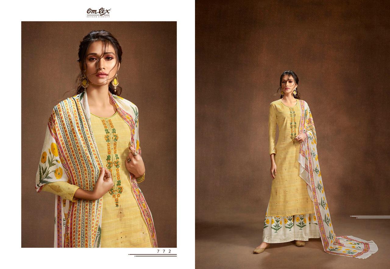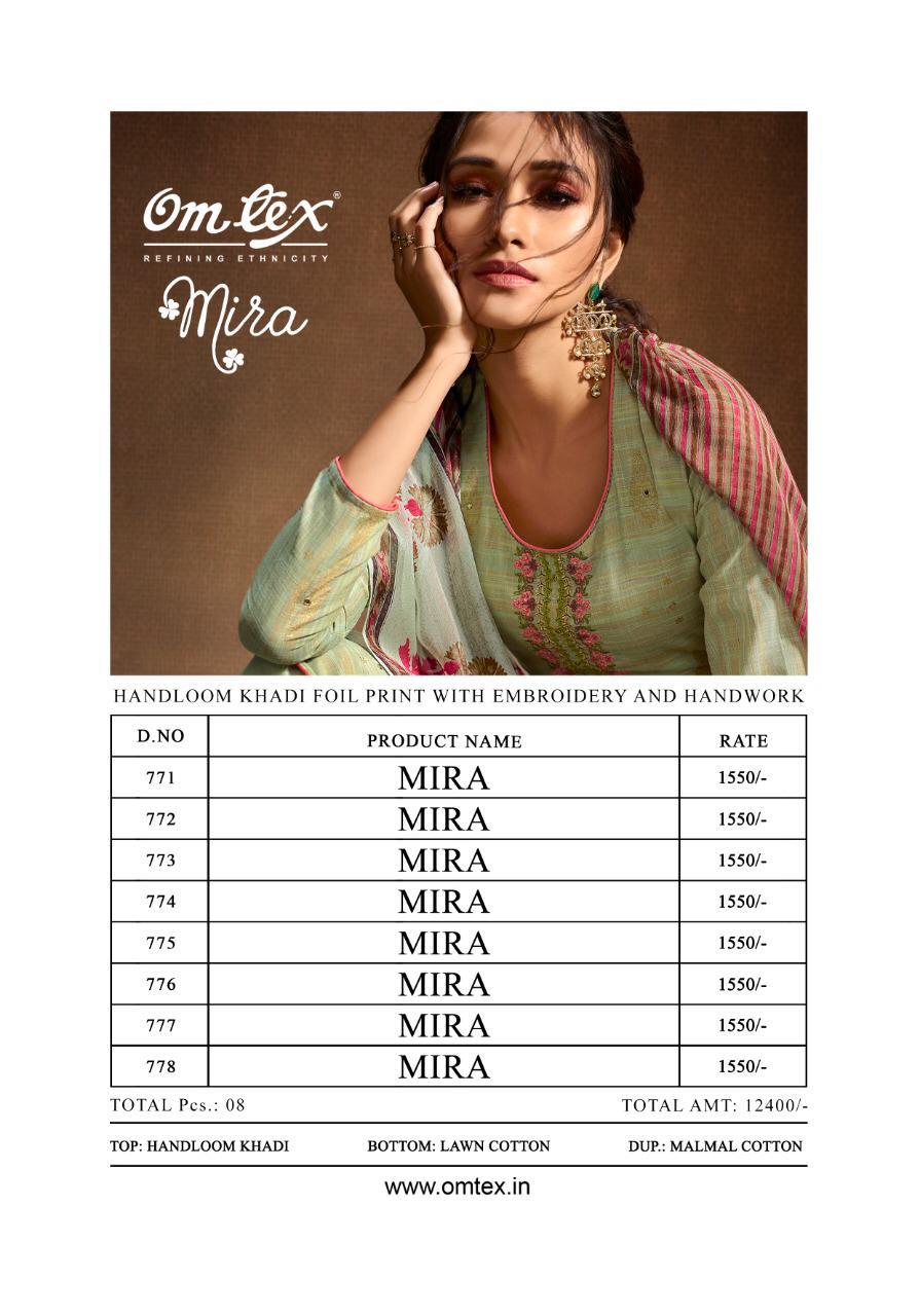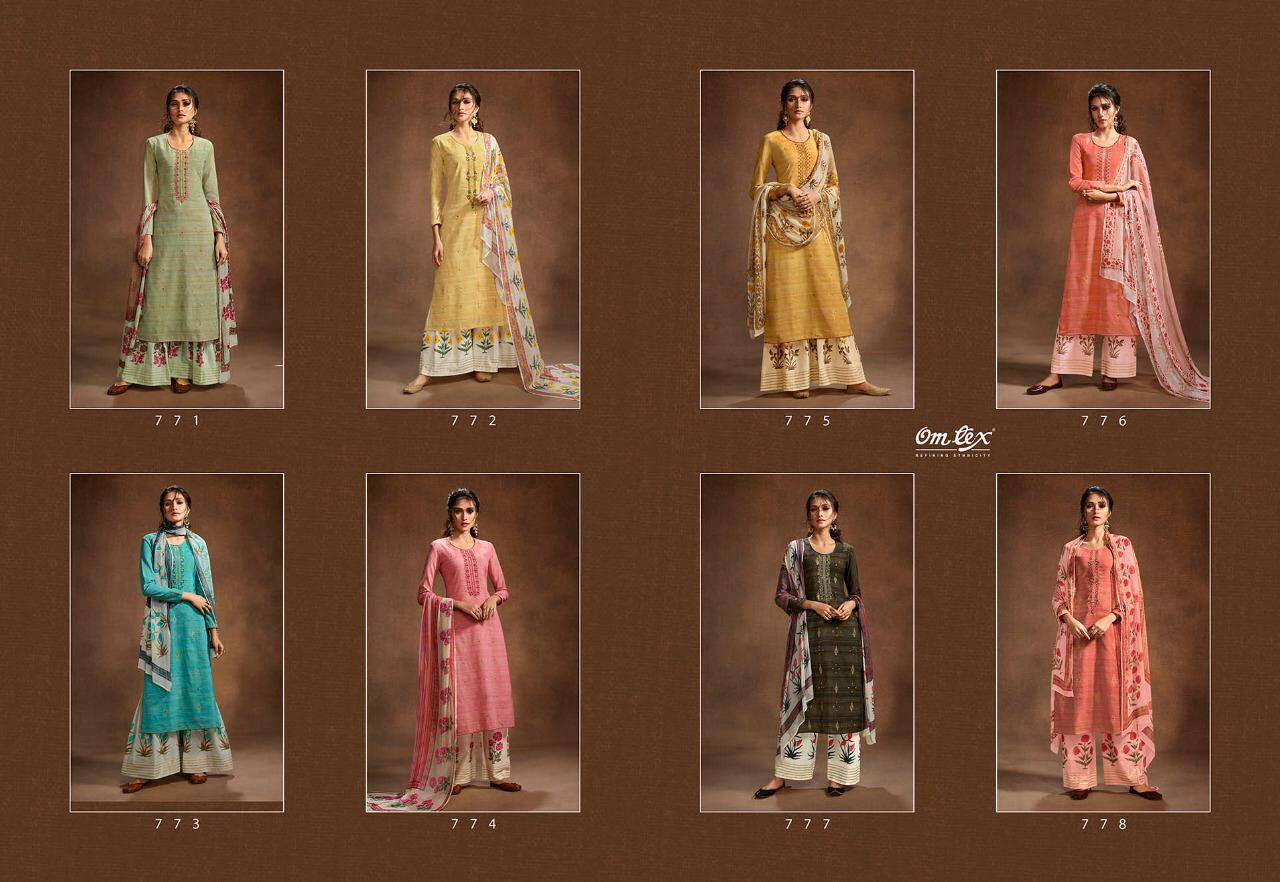 Buy Online Mira By Omtex Series 771 To 777 Designer Party Wear Suits Wholesale Supplier Gujarat 7 Pcs of Full Catalogue at Wholesale Price. Looking for Mira By Omtex Series 771 To 777 Designer Party Wear Suits Wholesale Supplier Gujarat Full Catalouge at Best Price? Buy Now Mira By Omtex Series 771 To 777 Designer Party Wear Suits Wholesale Supplier Gujarat at Wholesale Rate of Rs 10850 with Total 7 Pcs from authroized dealer and supplier of OM TEX Brand. Cost of Each piece is just only Rs 1550 which is very low and affordable price to resale the product in your retail store ,This is Surat based Wholesale Supplier & Dealer of OM TEX Brand. Click on Brand name to Know more about OM TEX Brand's products.Call or Whatsapp on 9898838984 for booking or enquiry