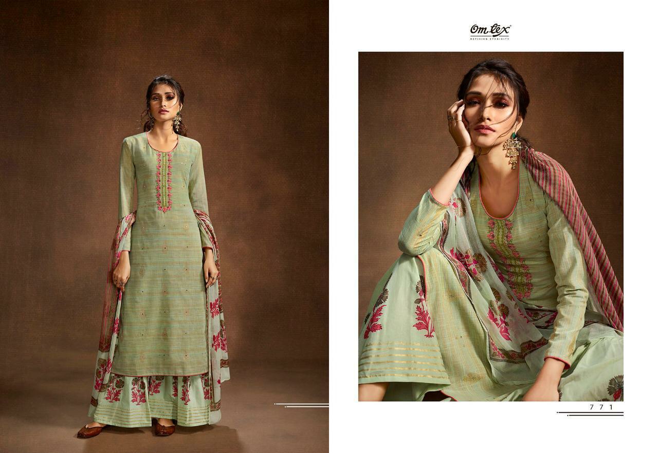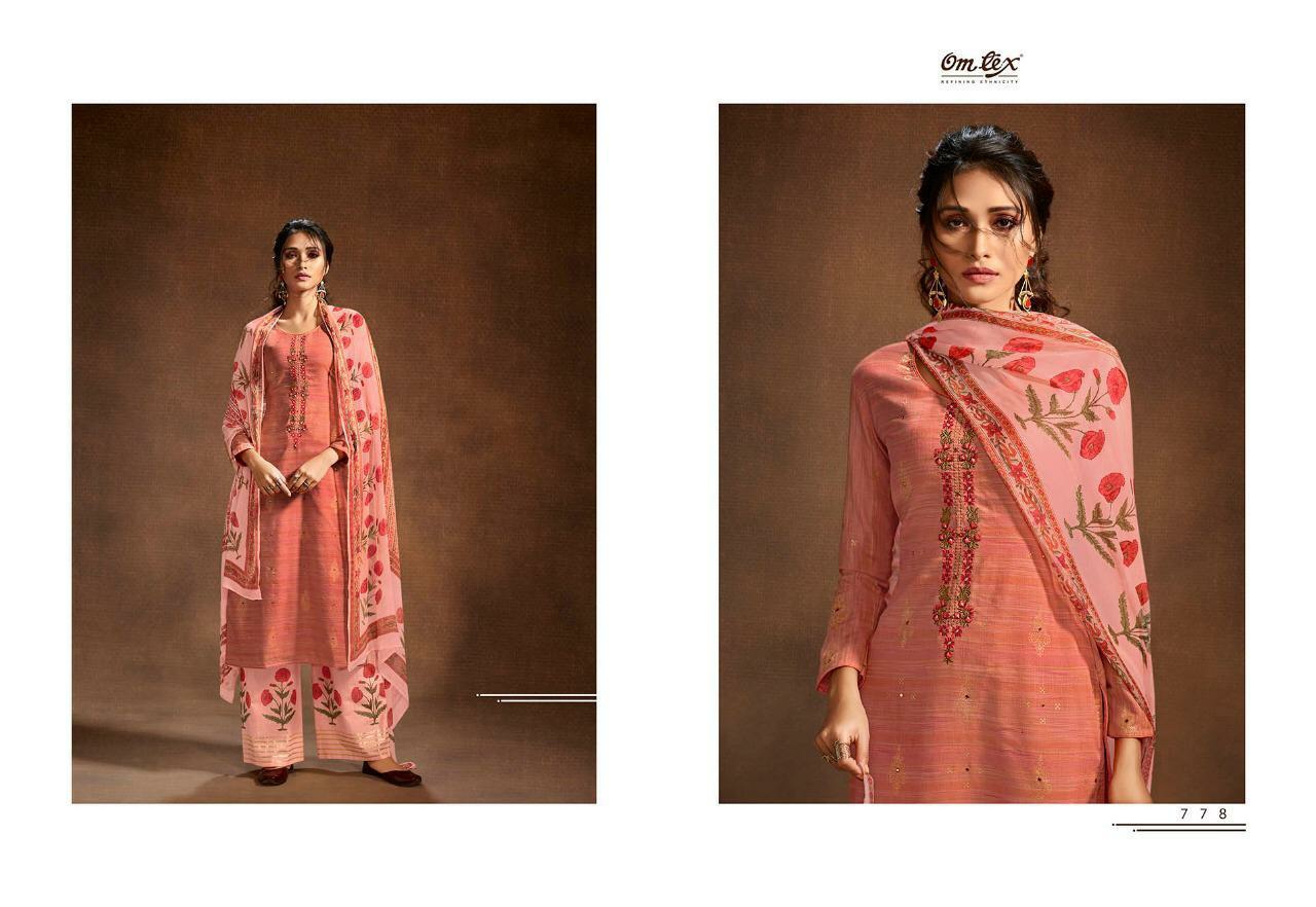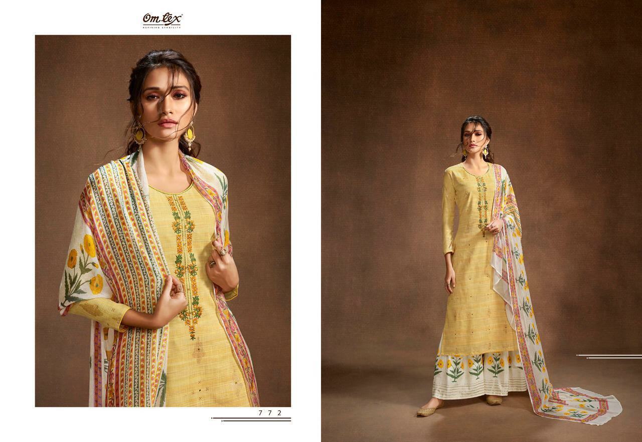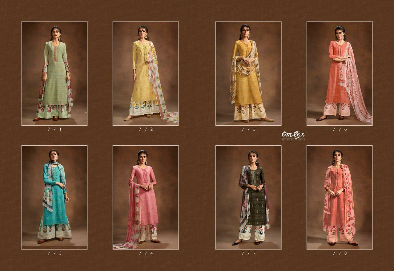 Buy Online Mira By Omtex Series 771 To 778 Cotton Embroidered Suits Wholesale Supplier India 8 Pcs of Full Catalogue at Wholesale Price. Looking for Mira By Omtex Series 771 To 778 Cotton Embroidered Suits Wholesale Supplier India Full Catalouge at Best Price? Buy Now Mira By Omtex Series 771 To 778 Cotton Embroidered Suits Wholesale Supplier India at Wholesale Rate of Rs 13200 with Total 8 Pcs from authroized dealer and supplier of OM TEX Brand. Cost of Each piece is just only Rs 1650 which is very low and affordable price to resale the product in your retail store ,This is Surat based Wholesale Supplier & Dealer of OM TEX Brand. Click on Brand name to Know more about OM TEX Brand's products.Call or Whatsapp on 9898838984 for booking or enquiry