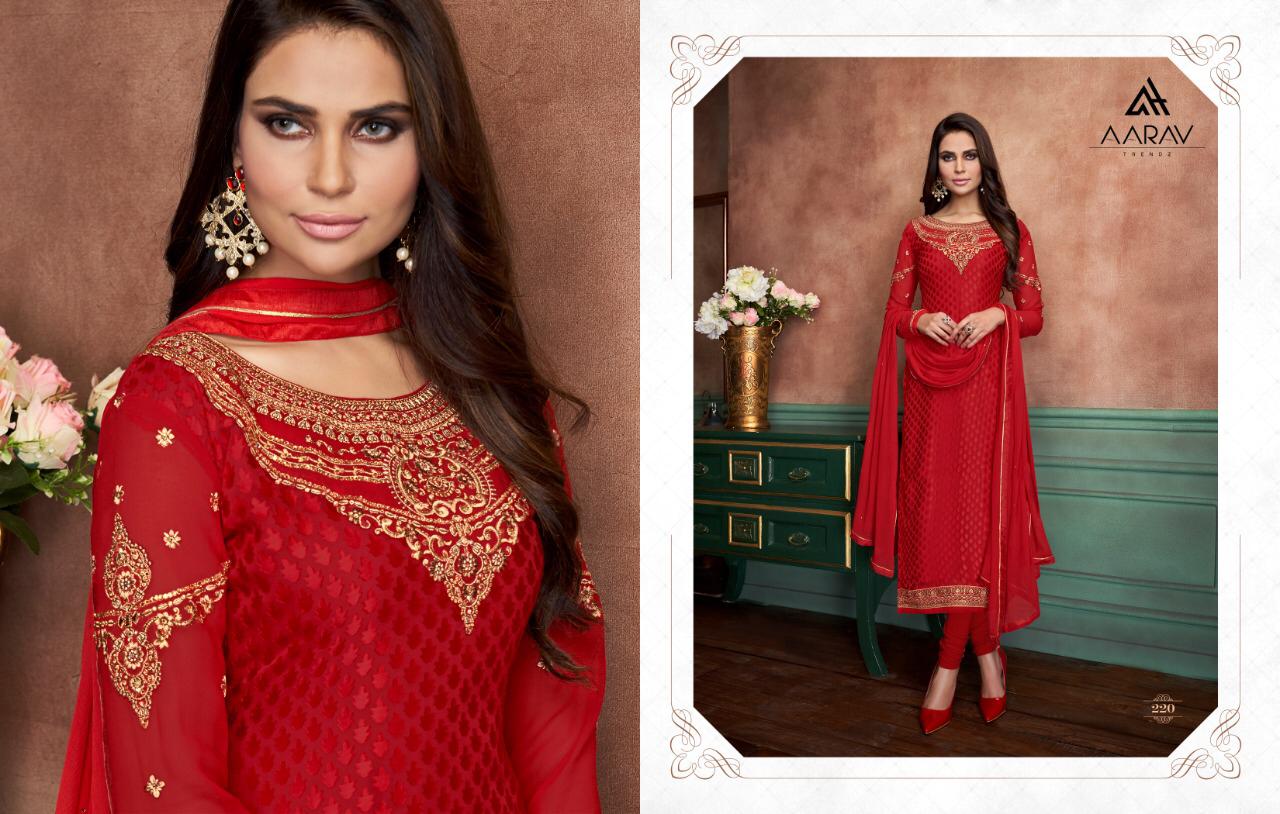 Buy Online Miracle Brasso Vol 3 Aarav Trendz Series 219 To 226 Brasso Embroidered Designer Party Wear Suits Wholesale Dealer Gujarat 8 Pcs of Full Catalogue at Wholesale Price. Looking for Miracle Brasso Vol 3 Aarav Trendz Series 219 To 226 Brasso Embroidered Designer Party Wear Suits Wholesale Dealer Gujarat Full Catalouge at Best Price? Buy Now Miracle Brasso Vol 3 Aarav Trendz Series 219 To 226 Brasso Embroidered Designer Party Wear Suits Wholesale Dealer Gujarat at Wholesale Rate of Rs 8792 with Total 8 Pcs from authroized dealer and supplier of Aarav Trendz Brand. Cost of Each piece is just only Rs 1099 which is very low and affordable price to resale the product in your retail store ,This is Surat based Wholesale Supplier & Dealer of Aarav Trendz Brand. Click on Brand name to Know more about Aarav Trendz Brand's products.Call or Whatsapp on 9898838984 for booking or enquiry