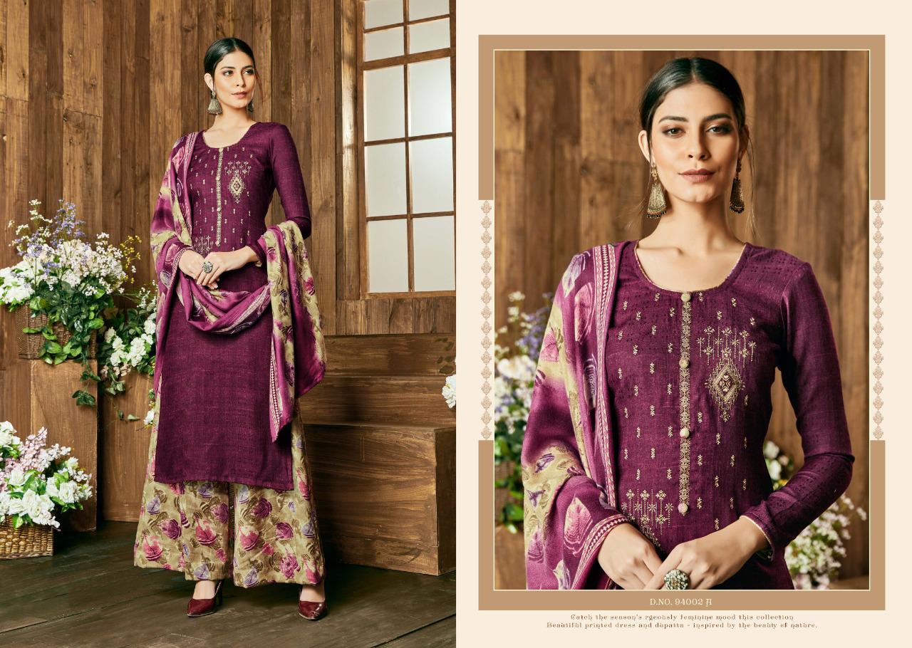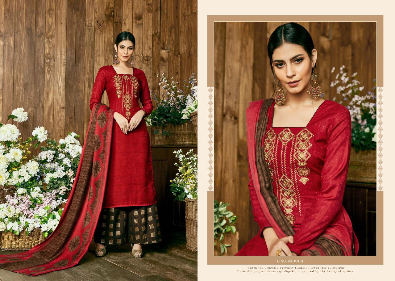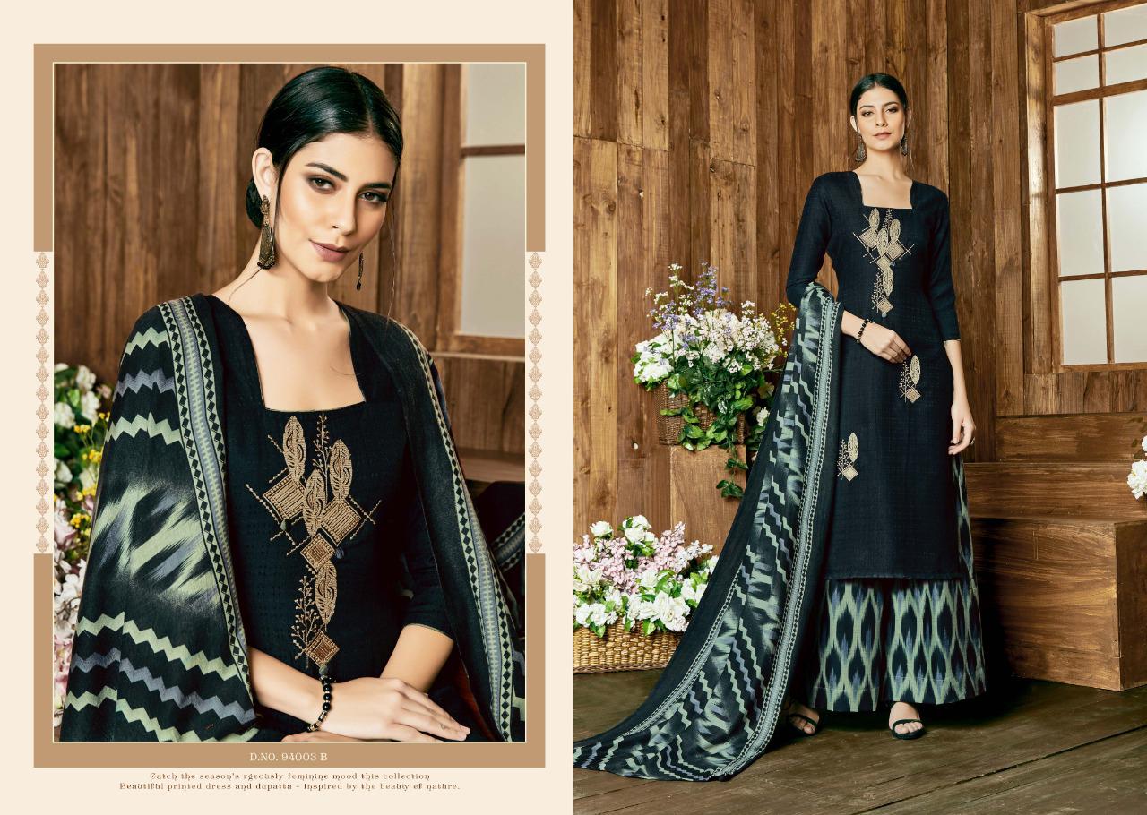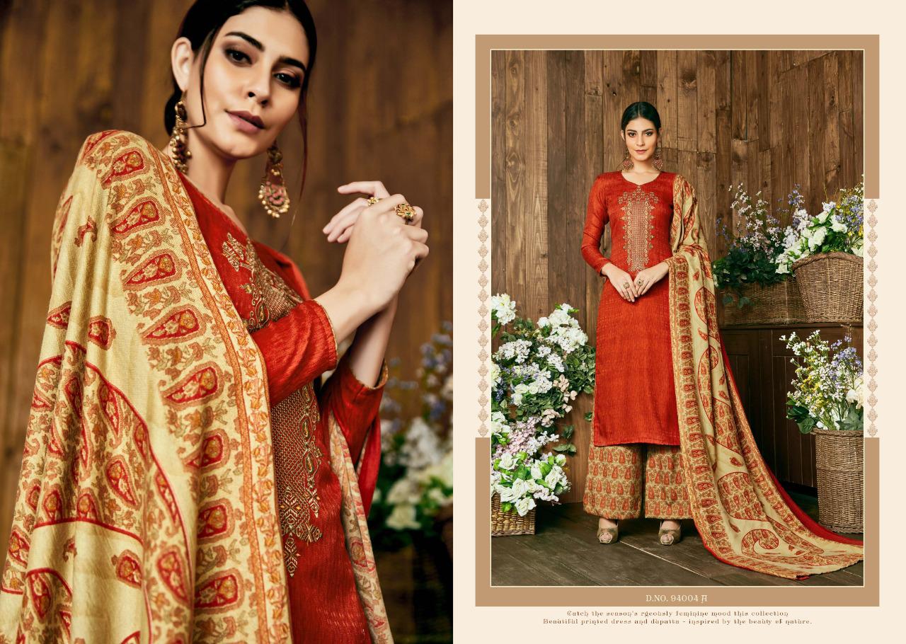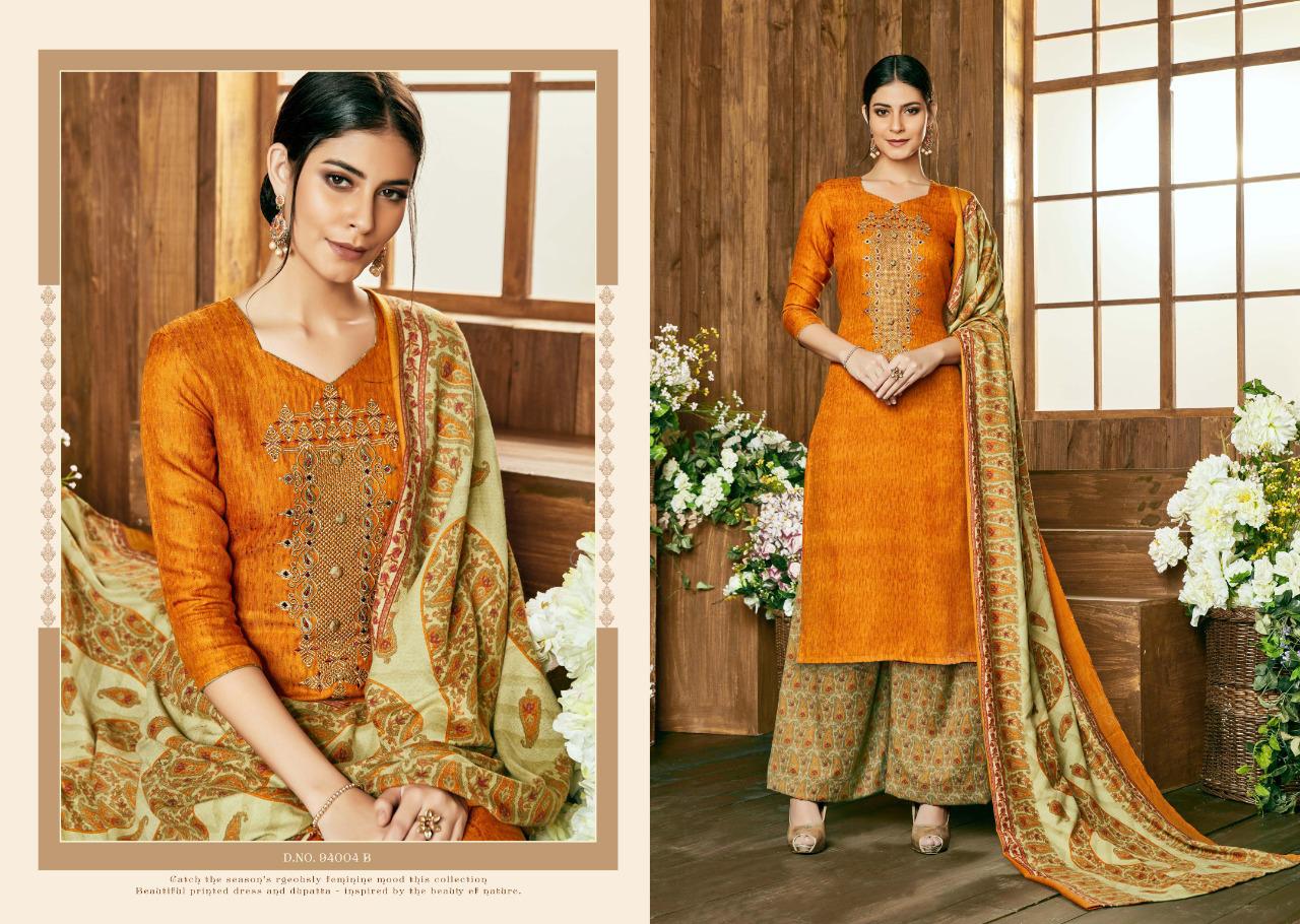 SARGAM PRINTS Present ***MIRACLE*** *?Fabric Details?* *Top:* PURE PASHMINA NAGETIVE WITH DESIGNER WORK *Bottom:* PASHMINA PRINT *Dupatta:* PURE PASHMINA STALL *Designs:* 8PCS *Ex Mill:* 695? *HSN CODE:*5407 |