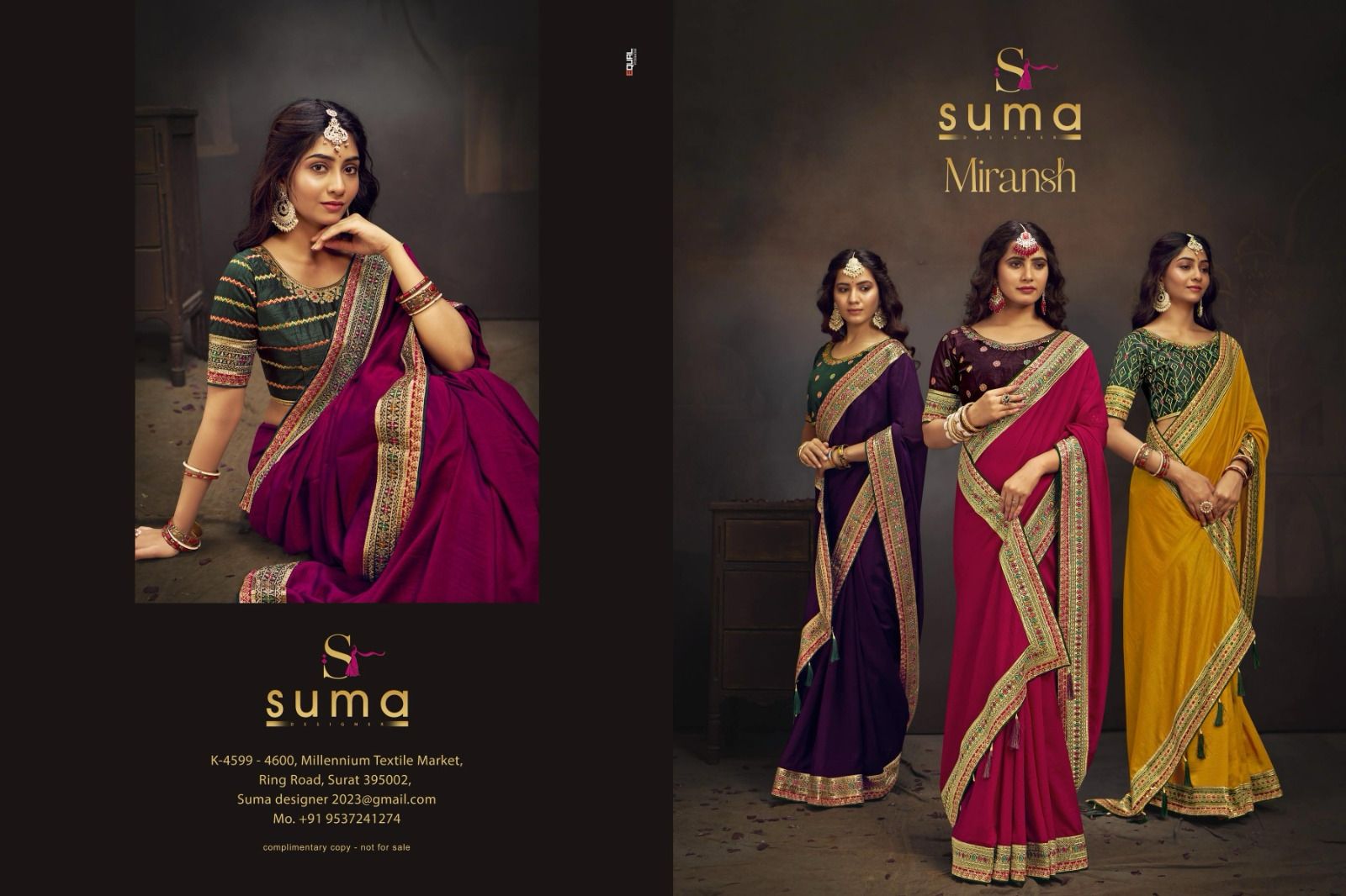 Buy Online Miransh Series 2001 To 2008 By Suma Designer 8 Pcs of Full Catalogue at Wholesale Price. Looking for Miransh Series 2001 To 2008 By Suma Designer Full Catalouge at Best Price? Buy Now Miransh Series 2001 To 2008 By Suma Designer at Wholesale Rate of Rs 8520 with Total 8 Pcs from authroized dealer and supplier of Brand. Cost of Each piece is just only Rs 1065 which is very low and affordable price to resale the product in your retail store ,This is Surat based Wholesale Supplier & Dealer of Brand. Click on Brand name to Know more about Brand's products.Call or Whatsapp on 9898838984 for booking or enquiry