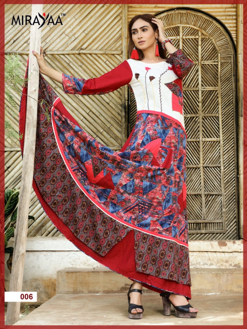 Mirayaa Rapchik 001 Series Reyon Gown Style Kurti Catlog Wholesale Dealer And Supplier Surat