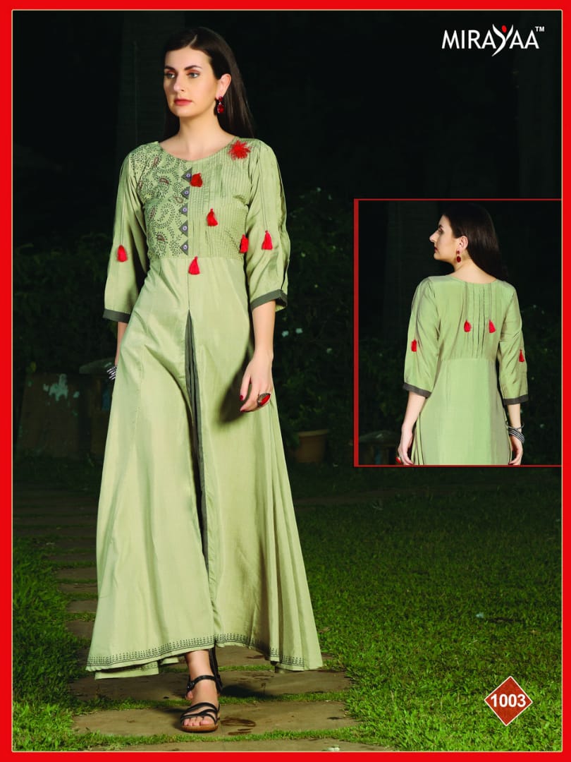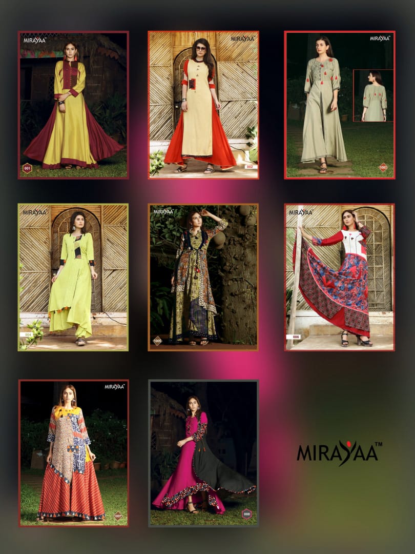 Buy Online Mirayaa Rapchik 001 Series Reyon Gown Style Kurti Catlog Wholesale Dealer And Supplier Surat 8 Pcs of Full Catalogue at Wholesale Price. Looking for Mirayaa Rapchik 001 Series Reyon Gown Style Kurti Catlog Wholesale Dealer And Supplier Surat Full Catalouge at Best Price? Buy Now Mirayaa Rapchik 001 Series Reyon Gown Style Kurti Catlog Wholesale Dealer And Supplier Surat at Wholesale Rate of Rs 7560 with Total 8 Pcs from authroized dealer and supplier of Mirayaa Brand. Cost of Each piece is just only Rs 945 which is very low and affordable price to resale the product in your retail store ,This is Surat based Wholesale Supplier & Dealer of Mirayaa Brand. Click on Brand name to Know more about Mirayaa Brand's products.Call or Whatsapp on 9898838984 for booking or enquiry