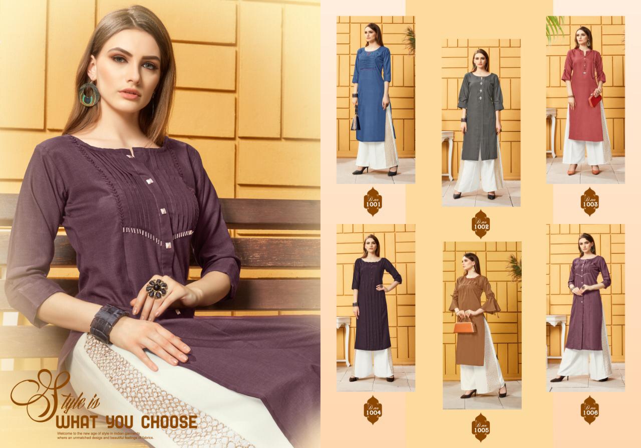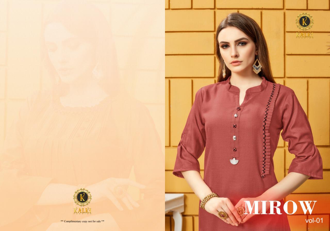 Buy Online Mirow Vol 1 By Kalki Fashion Cotton Kurtis With Plazzo Wholesale Supplier Surat 6 Pcs of Full Catalogue at Wholesale Price. Looking for Mirow Vol 1 By Kalki Fashion Cotton Kurtis With Plazzo Wholesale Supplier Surat Full Catalouge at Best Price? Buy Now Mirow Vol 1 By Kalki Fashion Cotton Kurtis With Plazzo Wholesale Supplier Surat at Wholesale Rate of Rs 4044 with Total 6 Pcs from authroized dealer and supplier of Brand. Cost of Each piece is just only Rs 674 which is very low and affordable price to resale the product in your retail store ,This is Surat based Wholesale Supplier & Dealer of Brand. Click on Brand name to Know more about Brand's products.Call or Whatsapp on 9898838984 for booking or enquiry