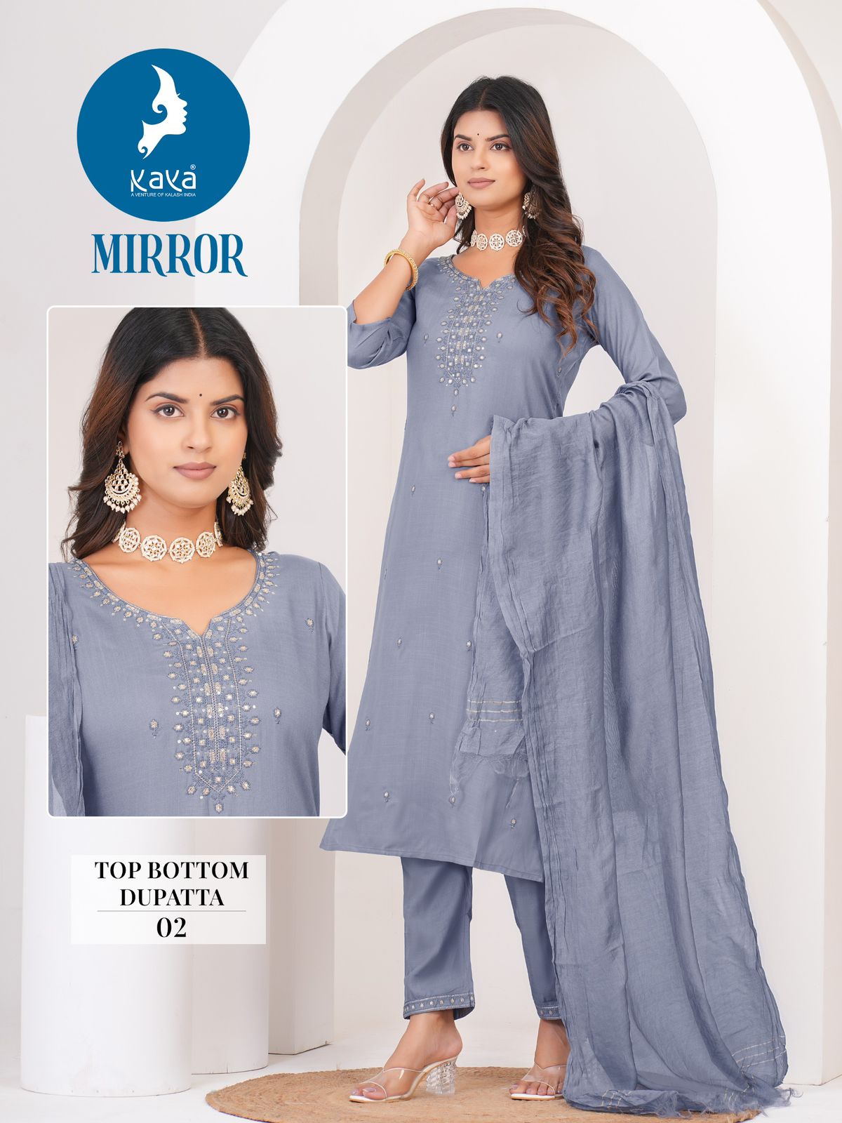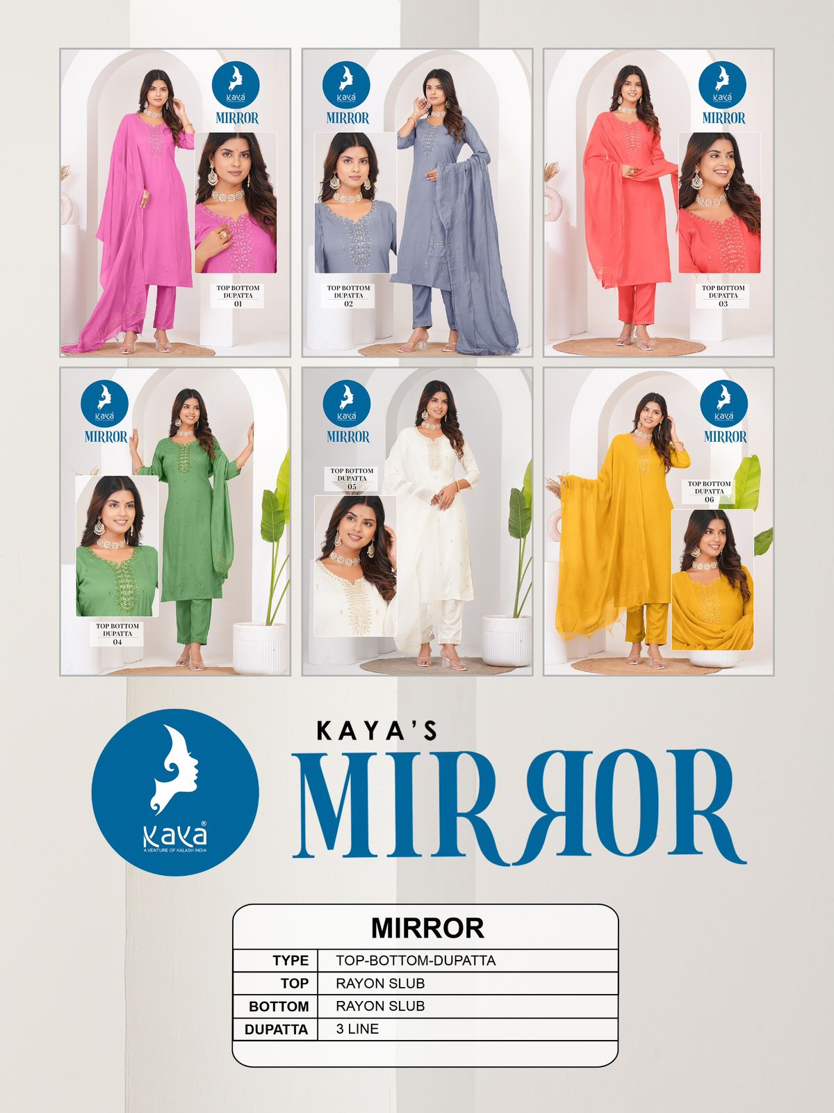 Mirror By Kaya Fancy Cut Kurti Bottom Dupatta Collection