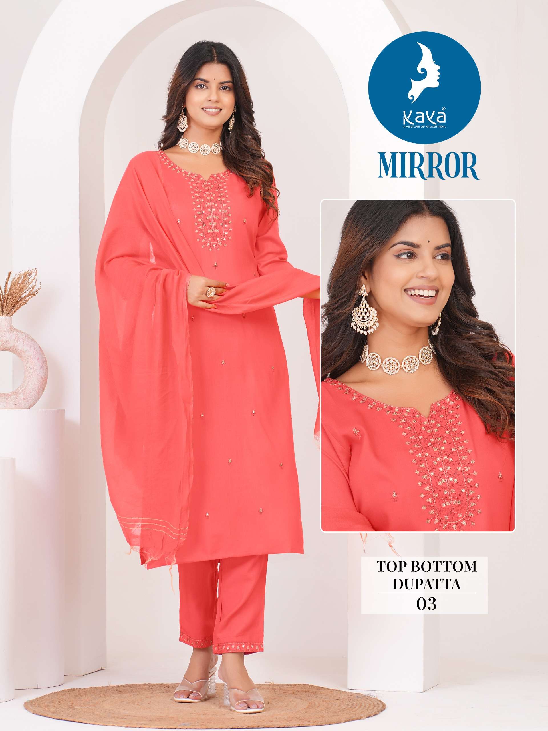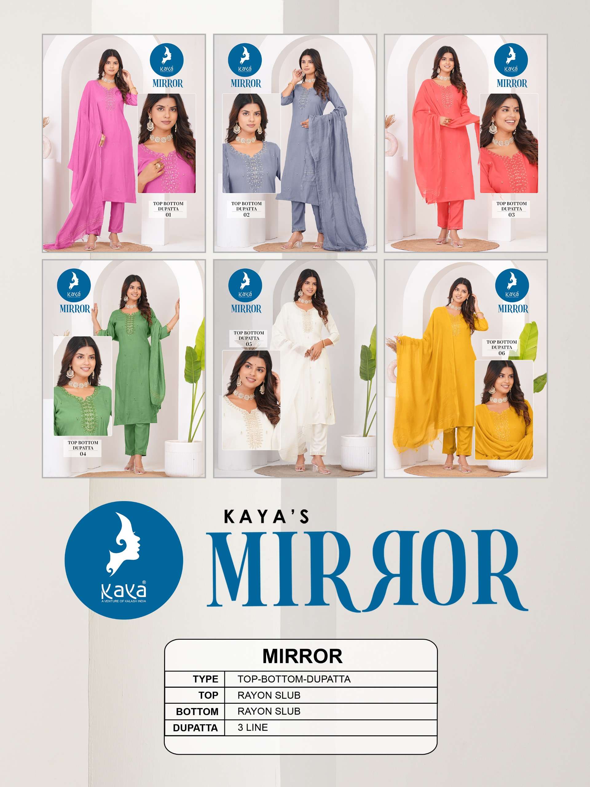 Mirror by kaya reyon kurti bottom dupatta collection manufacturer surat