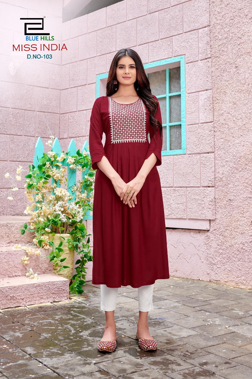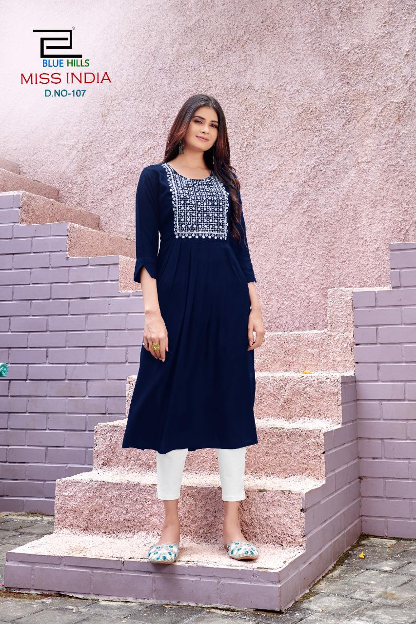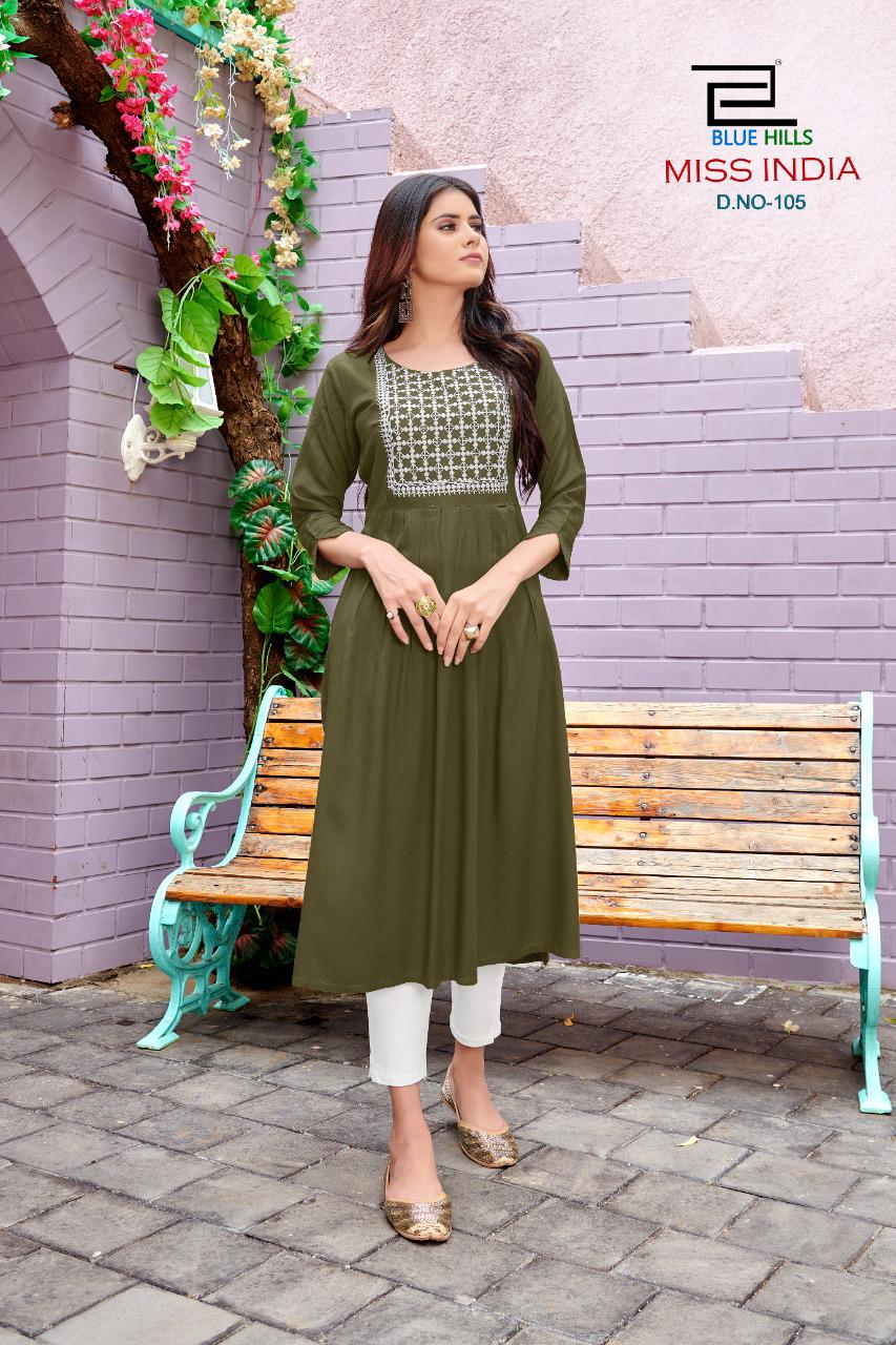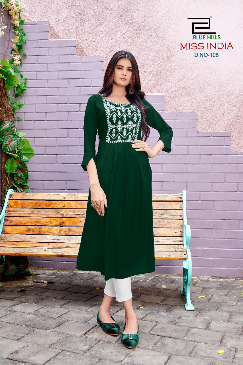 #*BLUE HILLS* presents, *MISS INDIA VOL 1* - *RAYON 14 KG* - *COTTON WHITE EMBROIDERY* - nayra cut - lenght 46 -M,L,XL,XXL,3XL,4XL,5XL,6XL,7XL,8XL,9XL,10XL Rate M to 5XL - 450+GST 6XL to 10XL - 465+GST - 8 DESIGNS Dispatch :- 2 to 3 days |