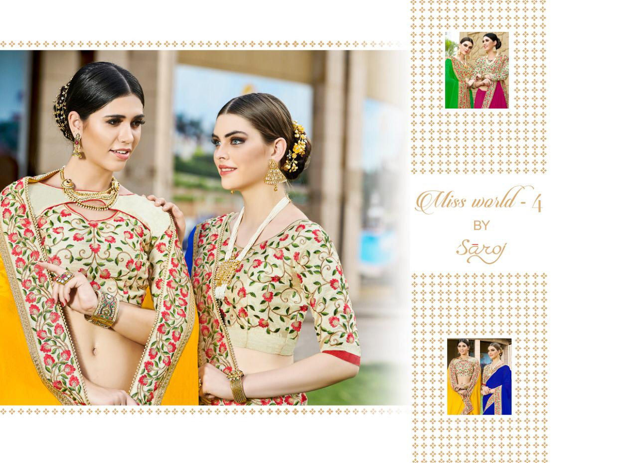 Buy Online Miss World 4 By Saroj Designer Party Wear Sarees Wholesale Supplier Nd Dealer India 8 Pcs of Full Catalogue at Wholesale Price. Looking for Miss World 4 By Saroj Designer Party Wear Sarees Wholesale Supplier Nd Dealer India Full Catalouge at Best Price? Buy Now Miss World 4 By Saroj Designer Party Wear Sarees Wholesale Supplier Nd Dealer India at Wholesale Rate of Rs 10320 with Total 8 Pcs from authroized dealer and supplier of SAROJ SAREE Brand. Cost of Each piece is just only Rs 1290 which is very low and affordable price to resale the product in your retail store ,This is Surat based Wholesale Supplier & Dealer of SAROJ SAREE Brand. Click on Brand name to Know more about SAROJ SAREE Brand's products.Call or Whatsapp on 9898838984 for booking or enquiry