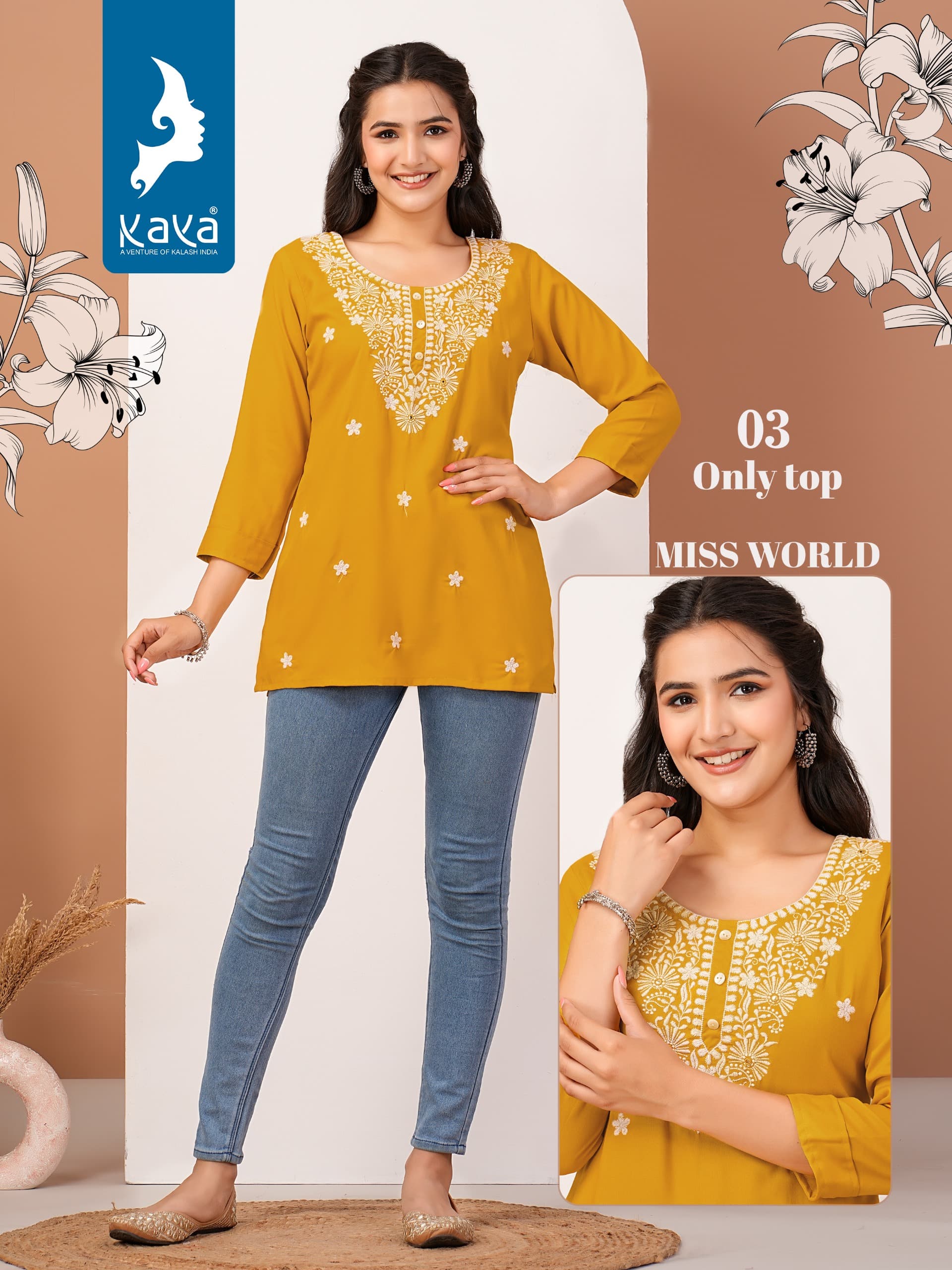 Miss World By Kaya Kurti Short Top Collection Manufacturer Surat