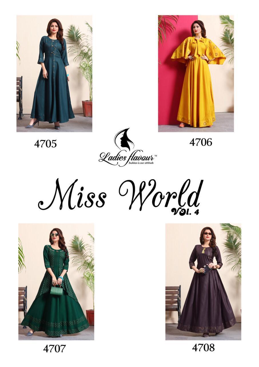 Buy Online Miss World Vol 4 By Ladies Flavour Slub With Foil Printed Kurtis Wholesale Supplier Gujarat 4 Pcs of Full Catalogue at Wholesale Price. Looking for Miss World Vol 4 By Ladies Flavour Slub With Foil Printed Kurtis Wholesale Supplier Gujarat Full Catalouge at Best Price? Buy Now Miss World Vol 4 By Ladies Flavour Slub With Foil Printed Kurtis Wholesale Supplier Gujarat at Wholesale Rate of Rs 2700 with Total 4 Pcs from authroized dealer and supplier of Ladies Flavour Brand. Cost of Each piece is just only Rs 675 which is very low and affordable price to resale the product in your retail store ,This is Surat based Wholesale Supplier & Dealer of Ladies Flavour Brand. Click on Brand name to Know more about Ladies Flavour Brand's products.Call or Whatsapp on 9898838984 for booking or enquiry