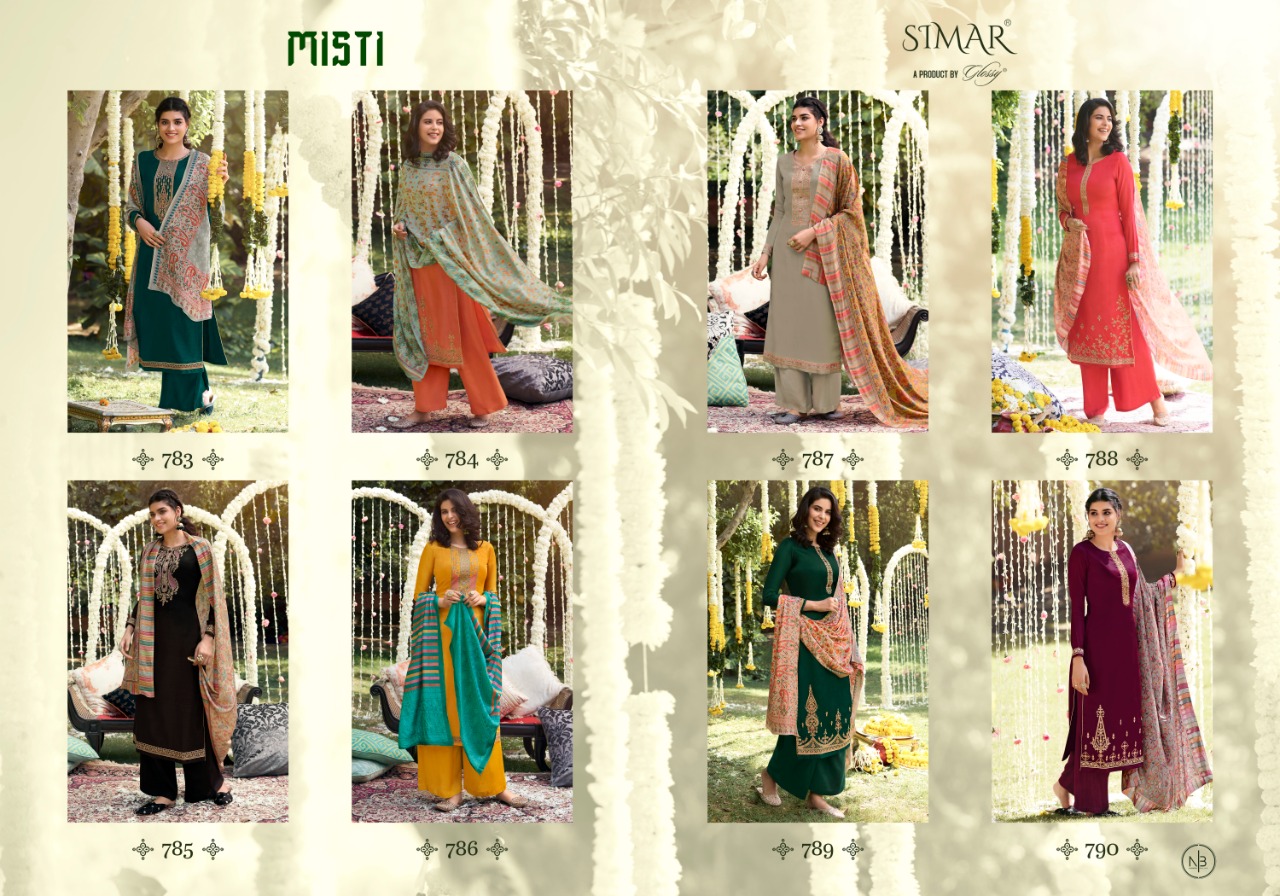 Misti product Details By Glossy Top : Pure Silk Pashmina with Fine Embroidery work Bottom : Pure Silk Pashmina Shawl : Pure Bemberg Silk Digital Print Rate-1495 per pcs . Set to set . Delivery 2 days |