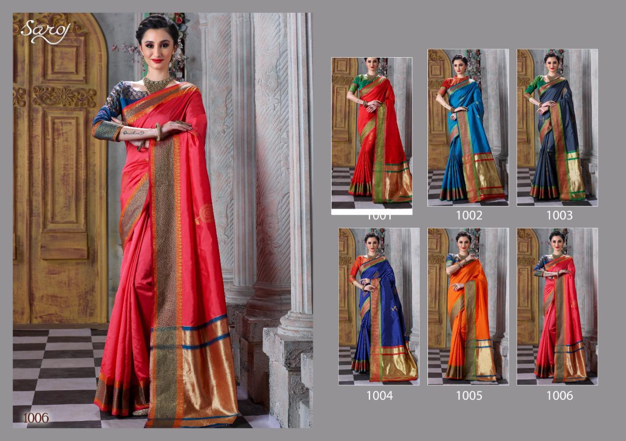 Buy Online Mitali By Saroj Cotton Silk Sarees Wholesale Supplier And Dealer Surat 6 Pcs of Full Catalogue at Wholesale Price. Looking for Mitali By Saroj Cotton Silk Sarees Wholesale Supplier And Dealer Surat Full Catalouge at Best Price? Buy Now Mitali By Saroj Cotton Silk Sarees Wholesale Supplier And Dealer Surat at Wholesale Rate of Rs 5490 with Total 6 Pcs from authroized dealer and supplier of SAROJ SAREE Brand. Cost of Each piece is just only Rs 915 which is very low and affordable price to resale the product in your retail store ,This is Surat based Wholesale Supplier & Dealer of SAROJ SAREE Brand. Click on Brand name to Know more about SAROJ SAREE Brand's products.Call or Whatsapp on 9898838984 for booking or enquiry