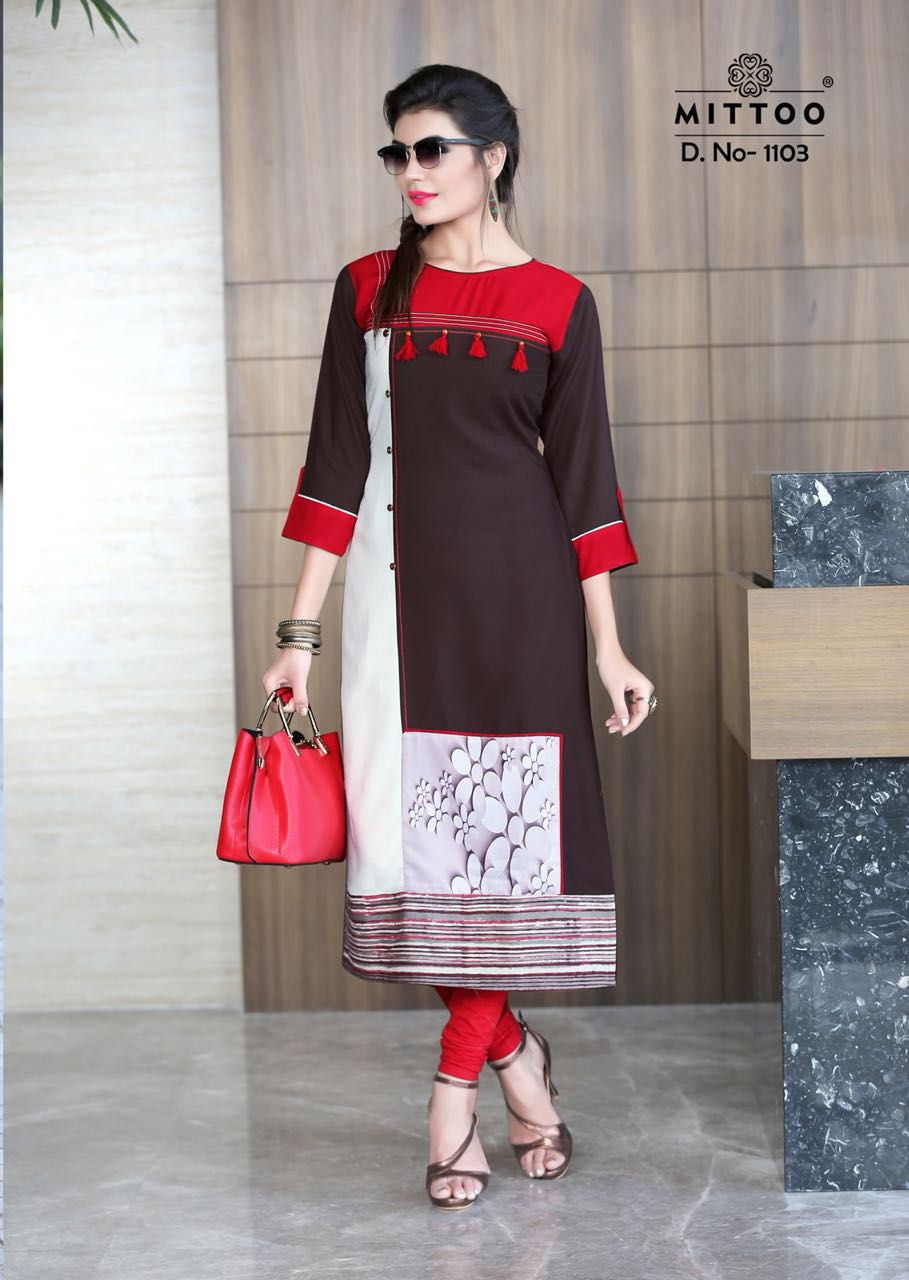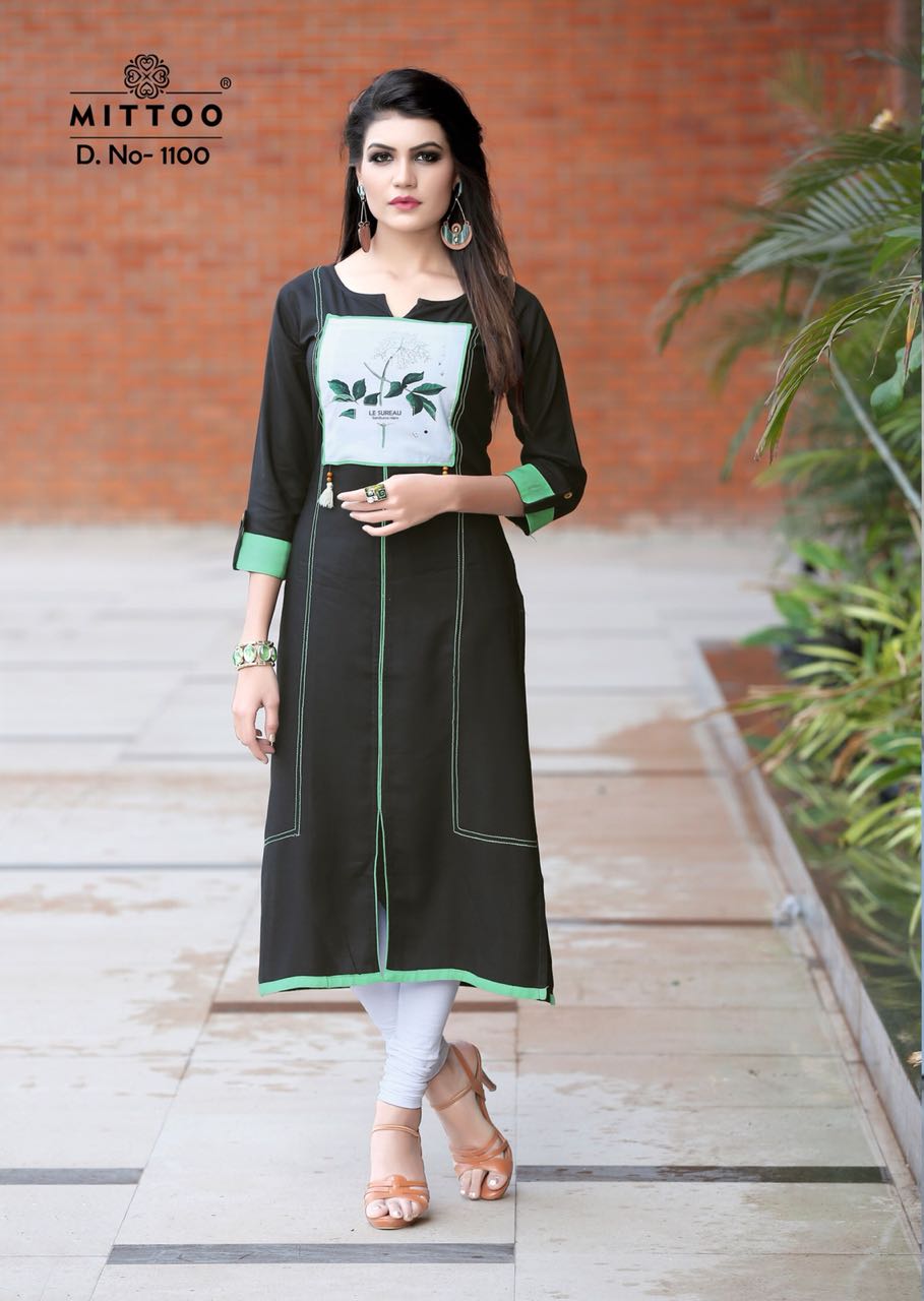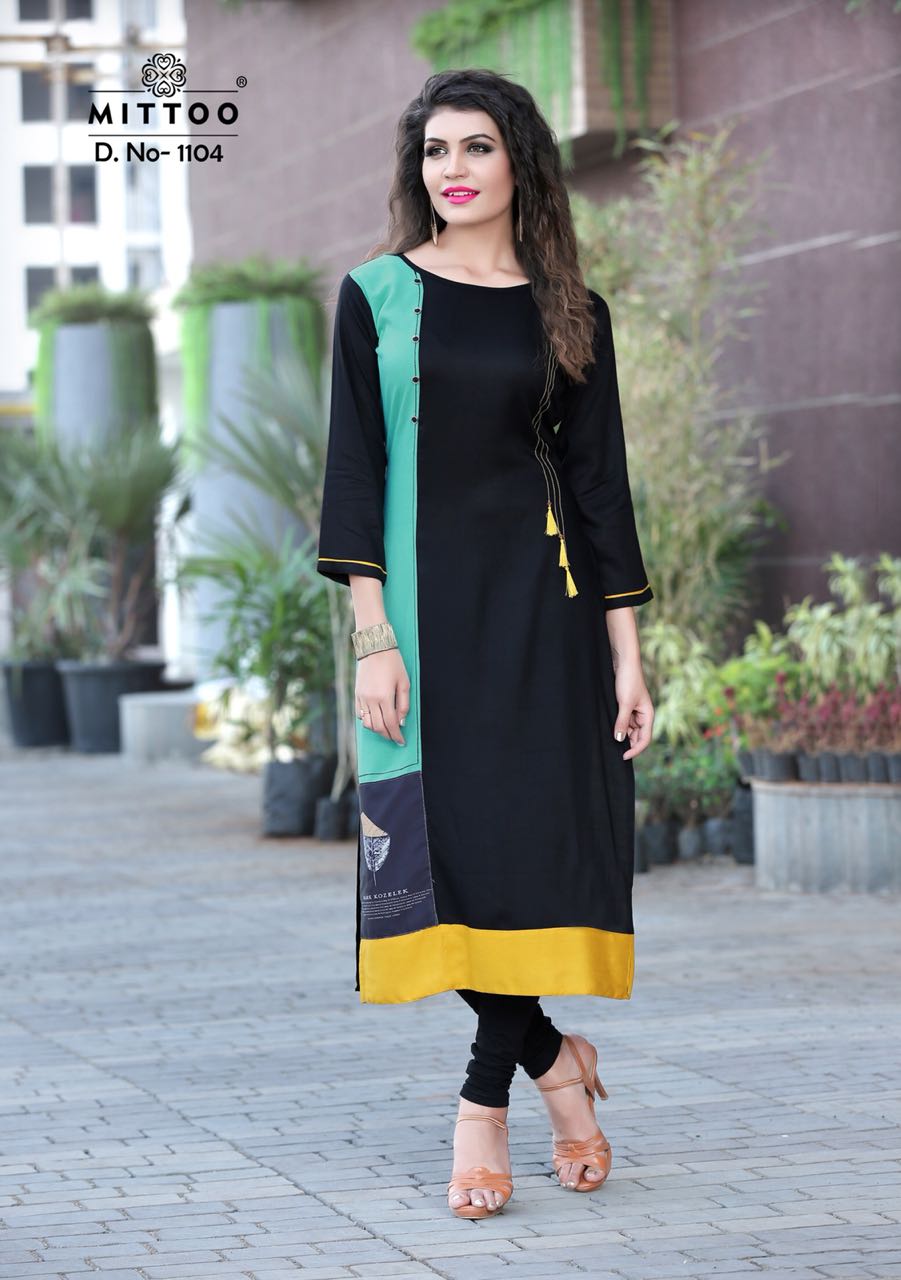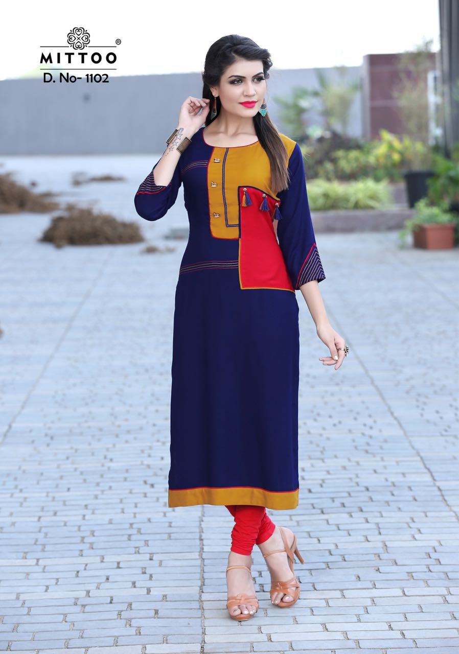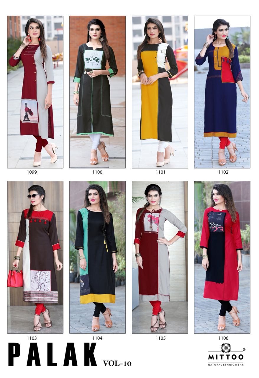 Buy Online Mittoo Palak Vol 10 1099 Series Fancy Reon Kurti Collection Reyon Kurti Catlog Dealer And Supplier Surat 8 Pcs of Full Catalogue at Wholesale Price. Looking for Mittoo Palak Vol 10 1099 Series Fancy Reon Kurti Collection Reyon Kurti Catlog Dealer And Supplier Surat Full Catalouge at Best Price? Buy Now Mittoo Palak Vol 10 1099 Series Fancy Reon Kurti Collection Reyon Kurti Catlog Dealer And Supplier Surat at Wholesale Rate of Rs 3560 with Total 8 Pcs from authroized dealer and supplier of MITTOO Brand. Cost of Each piece is just only Rs 445 which is very low and affordable price to resale the product in your retail store ,This is Surat based Wholesale Supplier & Dealer of MITTOO Brand. Click on Brand name to Know more about MITTOO Brand's products.Call or Whatsapp on 9898838984 for booking or enquiry
