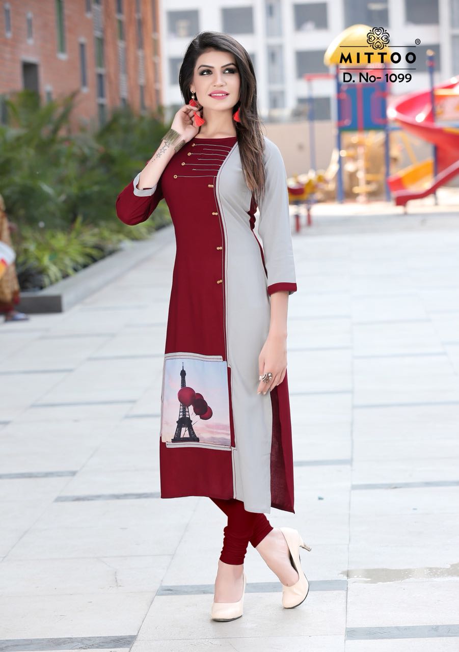 Mittoo Palak Vol 10 1099 Series Fancy Reon Kurti Collection Reyon Kurti Catlog Dealer And Supplier Surat