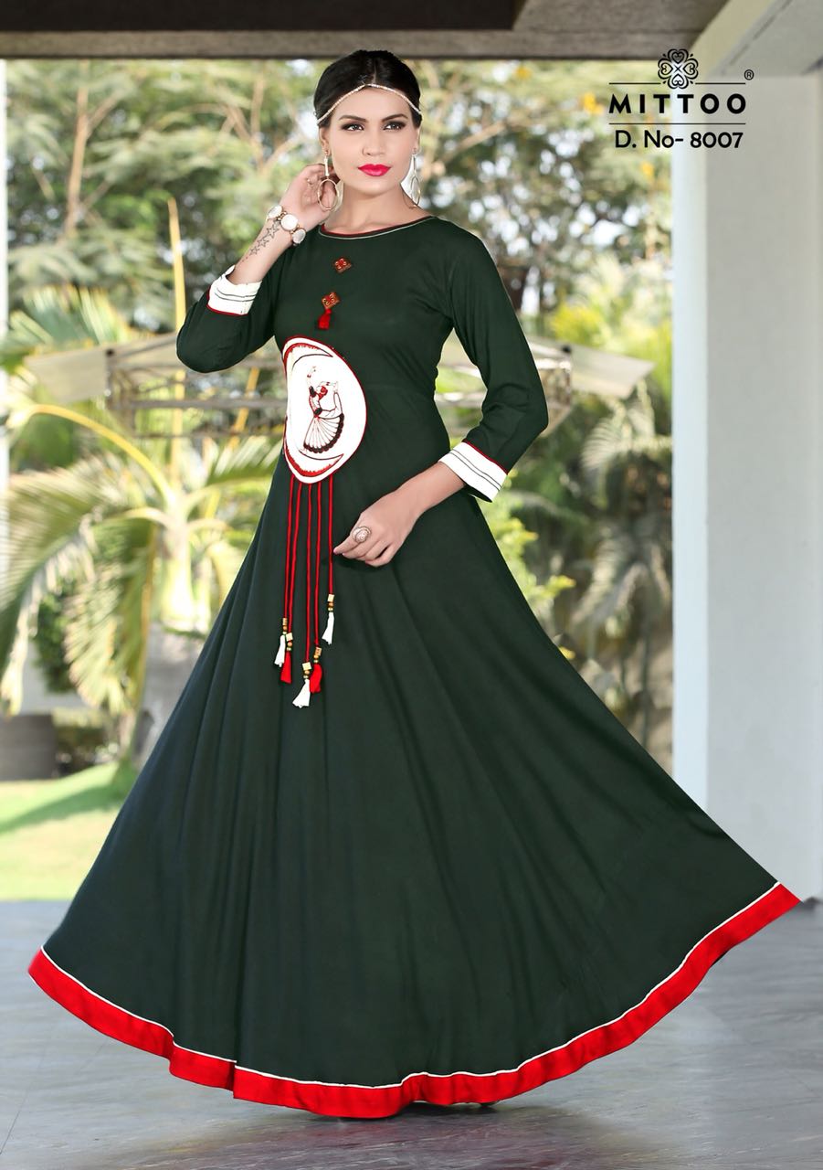 Buy Online Mittoo Prasang Vol 2 8007 Series Designer Gown Style Kurti Catlogue Wholesale Dealer Surat 6 Pcs of Full Catalogue at Wholesale Price. Looking for Mittoo Prasang Vol 2 8007 Series Designer Gown Style Kurti Catlogue Wholesale Dealer Surat Full Catalouge at Best Price? Buy Now Mittoo Prasang Vol 2 8007 Series Designer Gown Style Kurti Catlogue Wholesale Dealer Surat at Wholesale Rate of Rs 4980 with Total 6 Pcs from authroized dealer and supplier of MITTOO Brand. Cost of Each piece is just only Rs 830 which is very low and affordable price to resale the product in your retail store ,This is Surat based Wholesale Supplier & Dealer of MITTOO Brand. Click on Brand name to Know more about MITTOO Brand's products.Call or Whatsapp on 9898838984 for booking or enquiry