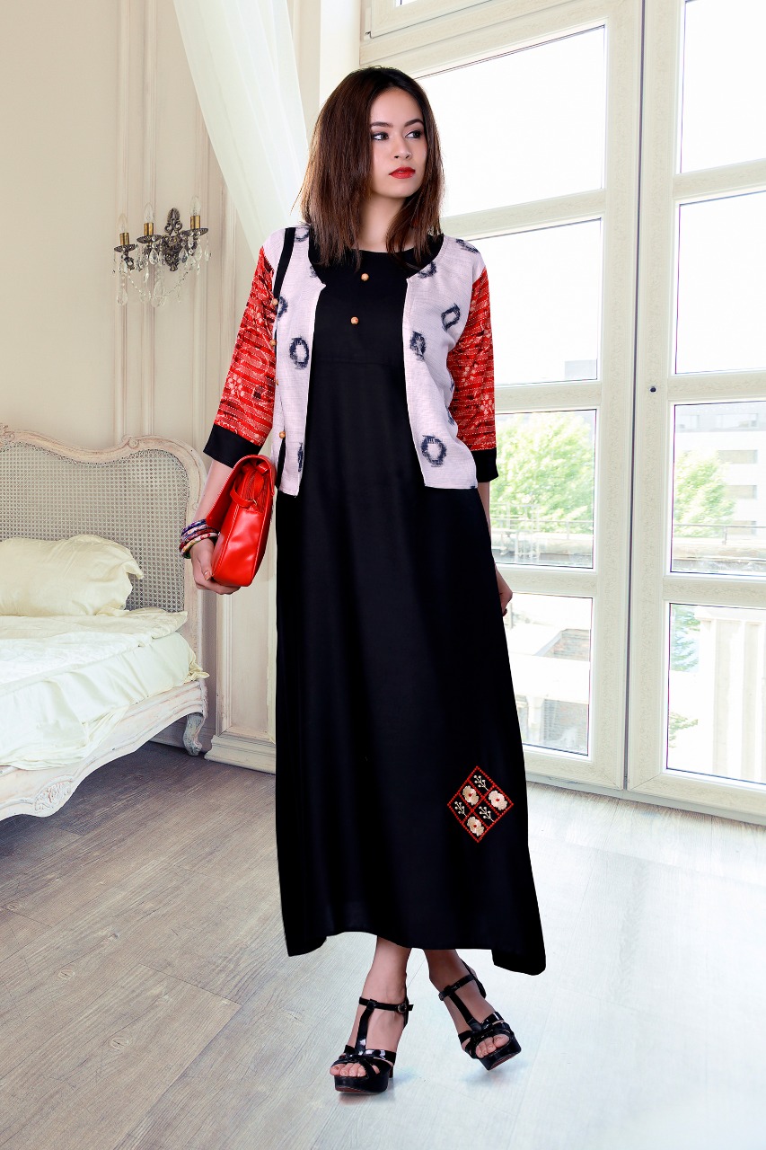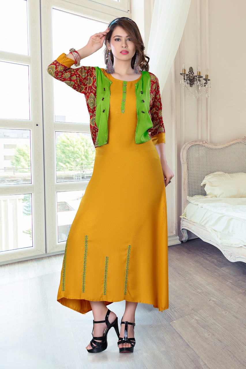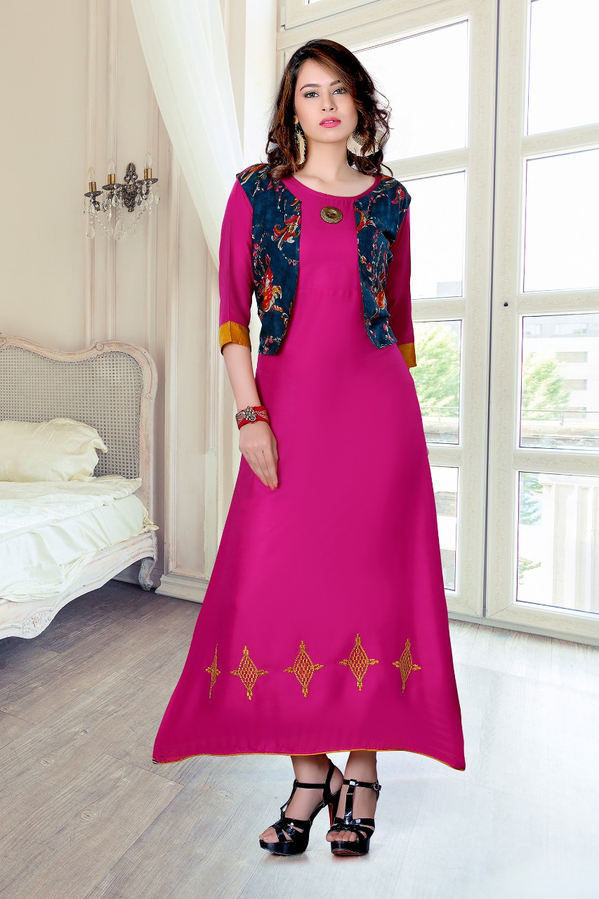 Mj Star Designer Reyon Kurti With Koti Catlog Wholesale Dealer And Supplier Surat