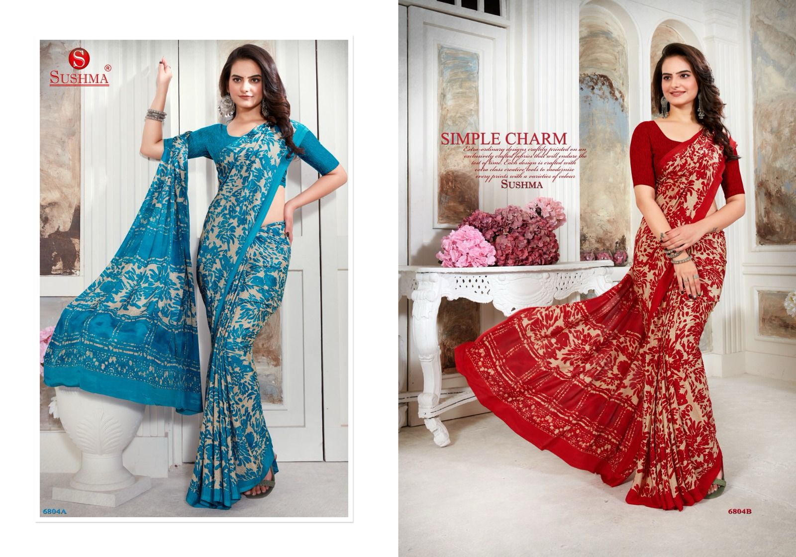 Buy Online Modern Culture Series 6801 By Sushma Crape Saree 16 Pcs of Full Catalogue at Wholesale Price. Looking for Modern Culture Series 6801 By Sushma Crape Saree Full Catalouge at Best Price? Buy Now Modern Culture Series 6801 By Sushma Crape Saree at Wholesale Rate of Rs 9840 with Total 16 Pcs from authroized dealer and supplier of Sushma Saree Brand. Cost of Each piece is just only Rs 615 which is very low and affordable price to resale the product in your retail store ,This is Surat based Wholesale Supplier & Dealer of Sushma Saree Brand. Click on Brand name to Know more about Sushma Saree Brand's products.Call or Whatsapp on 9898838984 for booking or enquiry