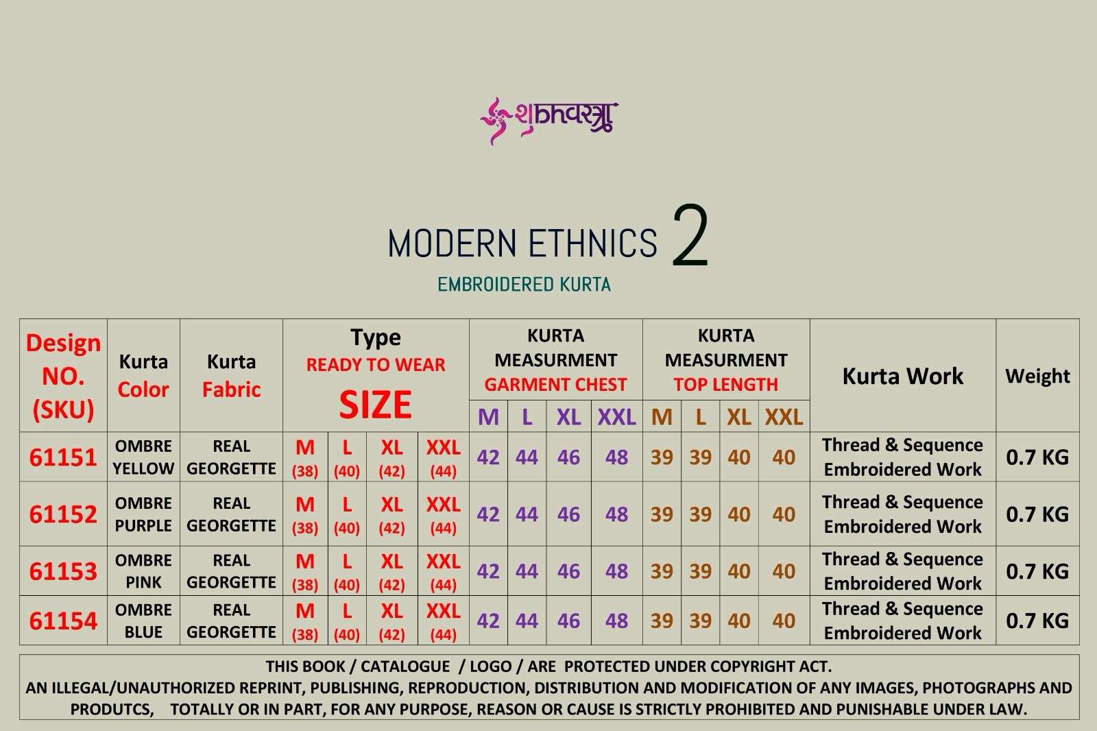 Buy Online MODERN ETHNICS 2 By SHUBHVASTRA Real Georgette suit collection manufacturer surat 4 Pcs of Full Catalogue at Wholesale Price. Looking for MODERN ETHNICS 2 By SHUBHVASTRA Real Georgette suit collection manufacturer surat Full Catalouge at Best Price? Buy Now MODERN ETHNICS 2 By SHUBHVASTRA Real Georgette suit collection manufacturer surat at Wholesale Rate of Rs 3800 with Total 4 Pcs from authroized dealer and supplier of BRAND'S Brand. Cost of Each piece is just only Rs 950 which is very low and affordable price to resale the product in your retail store ,This is Surat based Wholesale Supplier & Dealer of BRAND'S Brand. Click on Brand name to Know more about BRAND'S Brand's products.Call or Whatsapp on 9898838984 for booking or enquiry