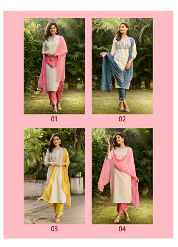 *Brand :* 100 miles *Catalog Name :* Mogra Top With Pant And Dupatta *Price :* ?735 *Piece :* 4 *Total Price :* 2940 ( GST Extra ) *Size :* M,L,XL,XXL,XXXL,4XL *Fabric :* flax cotton *Availibility :* On Booking |