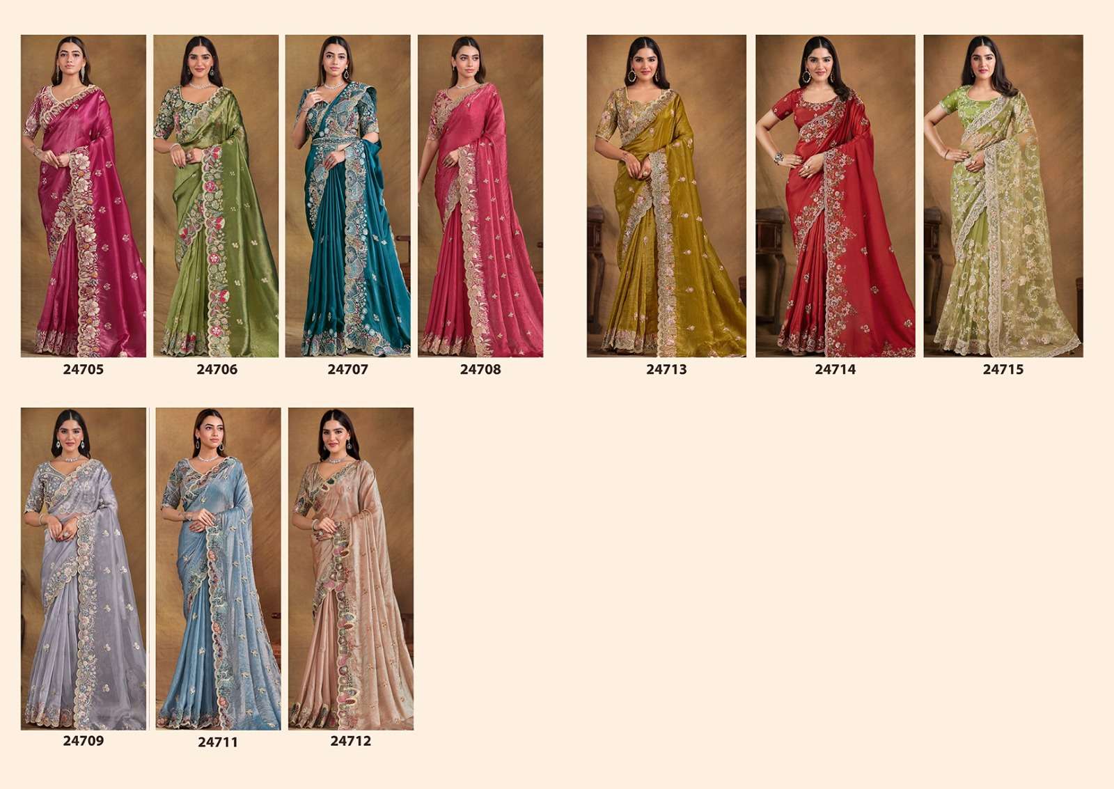 *PRICE :-* *24705-4735/-* *24706-4795/-* *24707-4915/-* *24708-4785/-* *24709-4625/-* *24711-4715/-* *24712-4725/-* *24713-4775/-* *24715-3365/-* +*5% GST EXTRA*